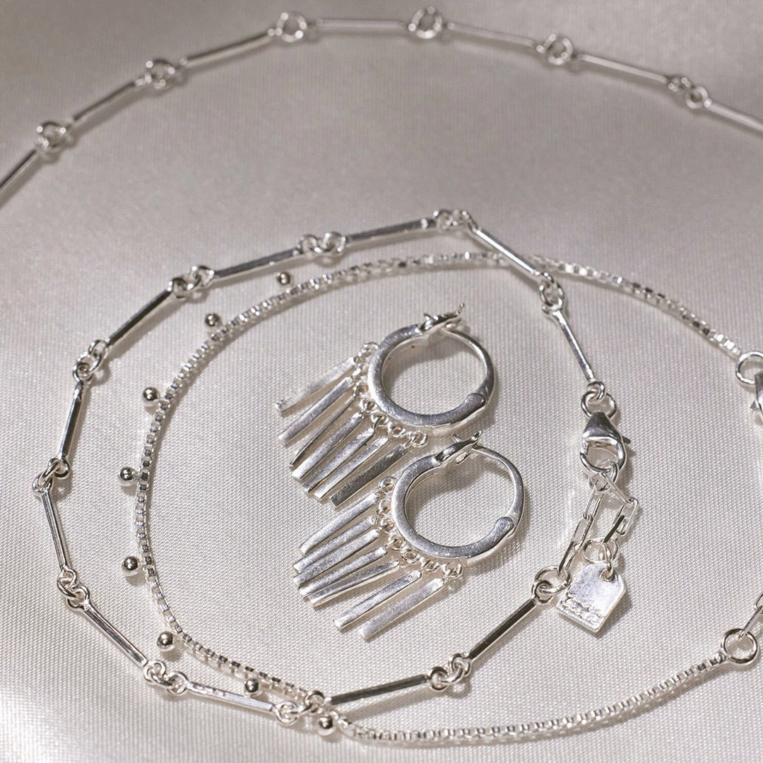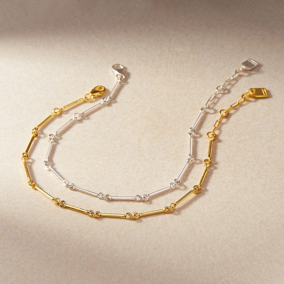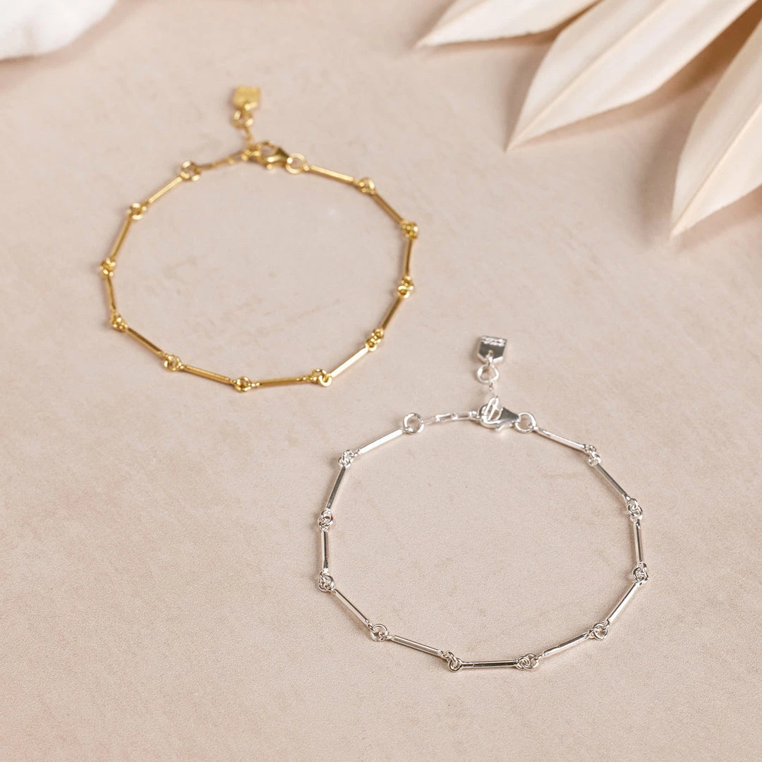 Breathe in and let go of the excess β this durable and chic statement piece will have you reaching for it everyday! The Bar Chain Bracelet, available in sterling silver orΒ 18K gold plating, is perfect to wear alone, or as an iconic centerpiece to your bracelet stack. Match it with our Bar Chain Necklace to complete your look!