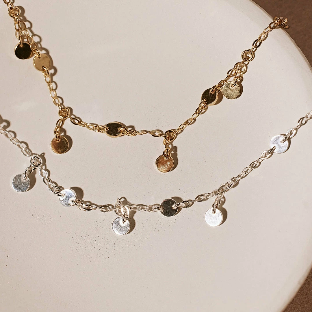 Embody effortless elegance from head to toe with our Mini Coin Drop Bracelet. Set on a delicate flat cable chain in a sterling silver or 18K gold plated finish, this crafted-with-care design features alternating stationary and dangling mini coin charms for a beautiful boho effect.
