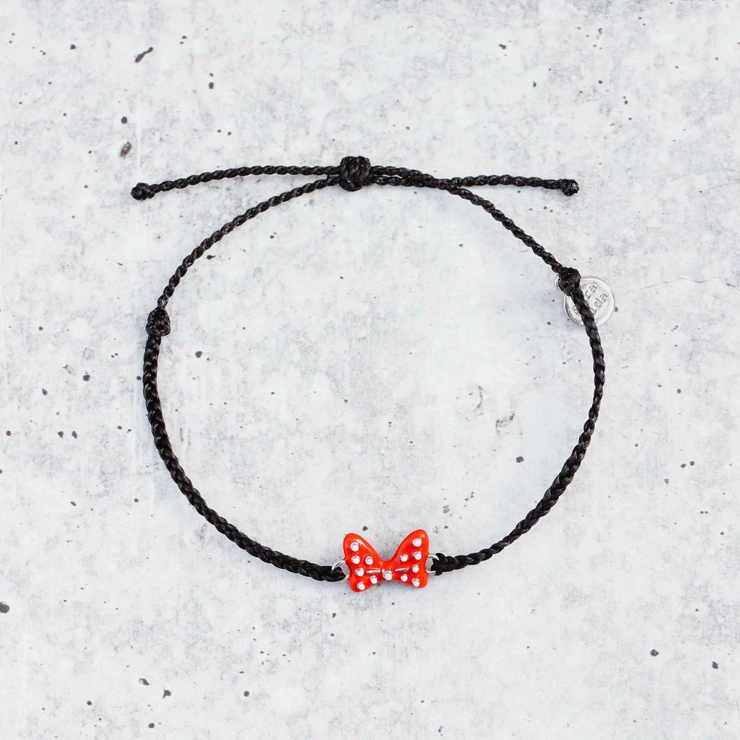 Look like a total Disney darling with our Disney Minnie Mouse Red Enamel Bow Charm Bracelet. This black bitty braid design features an enamel bow charm, with the too-cute polka dots that Minnie Mouse is known for!