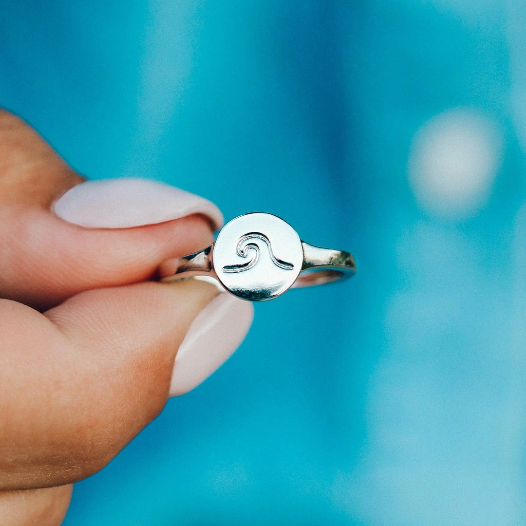 Your ring collection’s about to get even more rad, thanks to our new Wave Coin Ring. Featuring a silver band and signet ring style, this piece is etched with a wave symbol that elevates your surf style. Wear it with our Wave Coin Necklace or Wave Coin Charm for a killer combo.