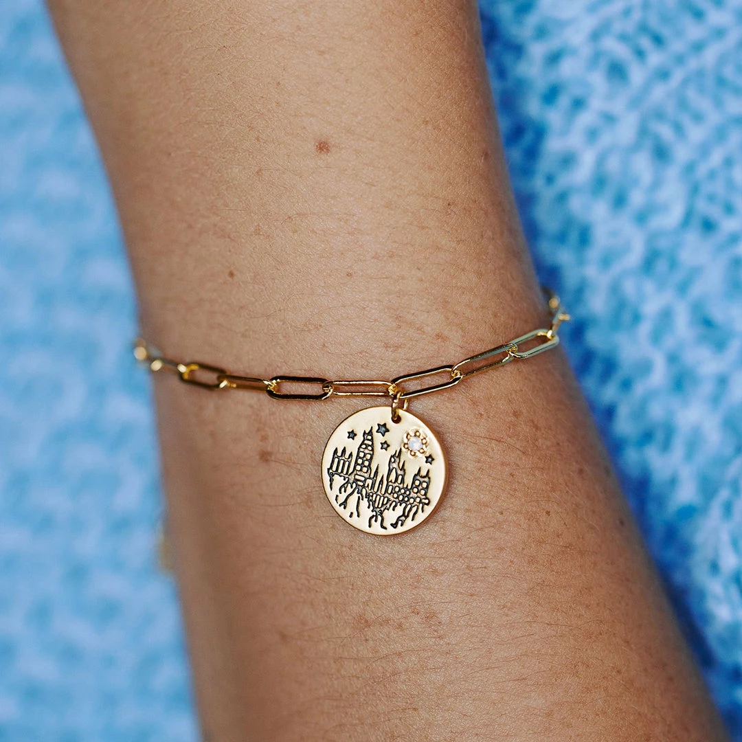 This paperclip chain bracelet is sure to make you feel like you’ve just stepped aboard the Hogwarts Express! It features a dangling charm with the Hogwarts Castle etched on one side, and “Hogwarts is my home” on the other. For every bracelet sold, Pura Vida will donate 5% of the purchase price to the World Literacy Foundation, with a maximum donation of $25,000. Your donations will help further the World Literacy Foundation’s mission to ensure that every child—regardless of geographic location—has the opportunity to acquire literacy skills and books to reach their full potential!