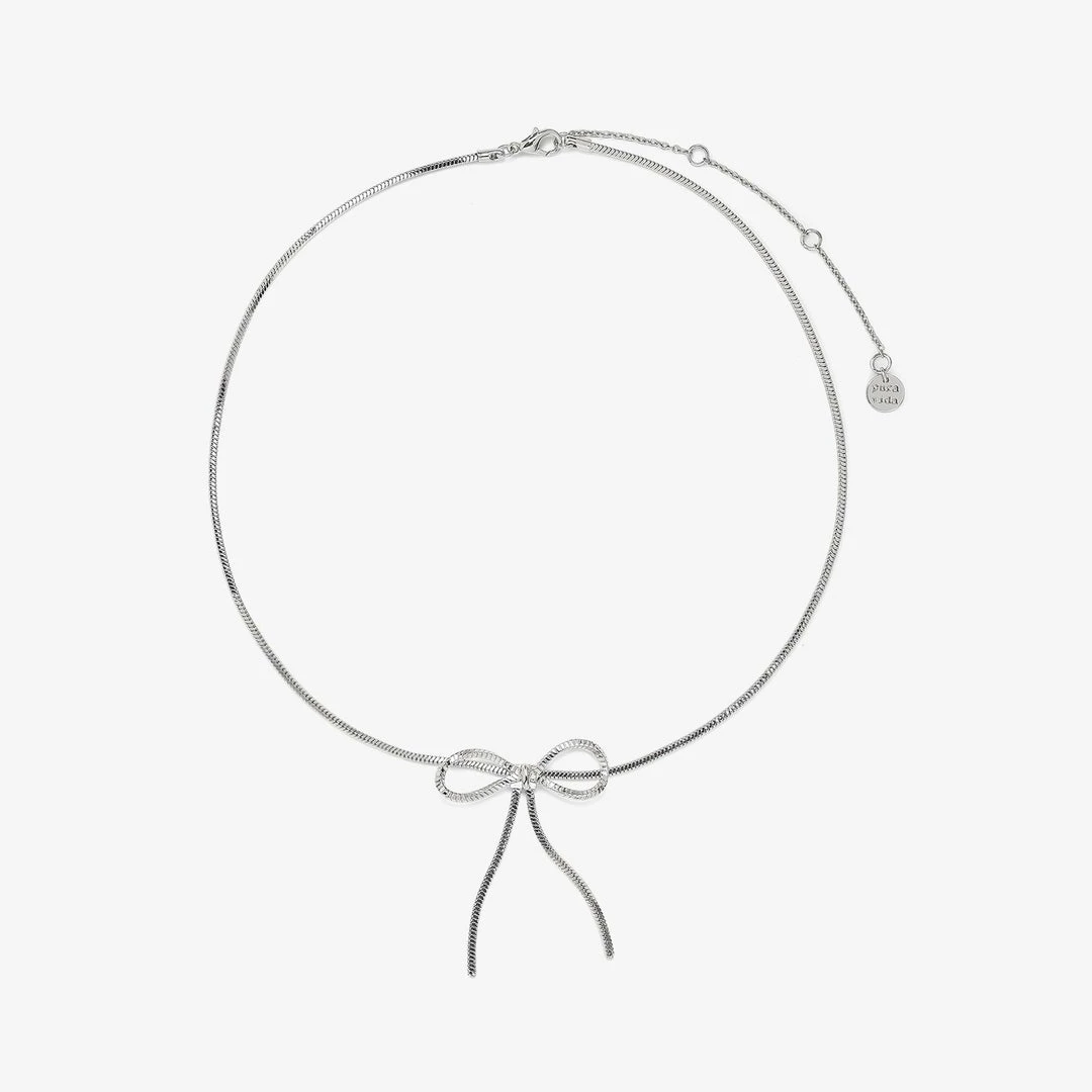 Ready or knot, here comes our Bow Choker! This silver snake-chain style features a dainty bow charm for a look thatβs fit to be tied (and worn every day). Match it back to our other bow styles for a super-cutesy look.
