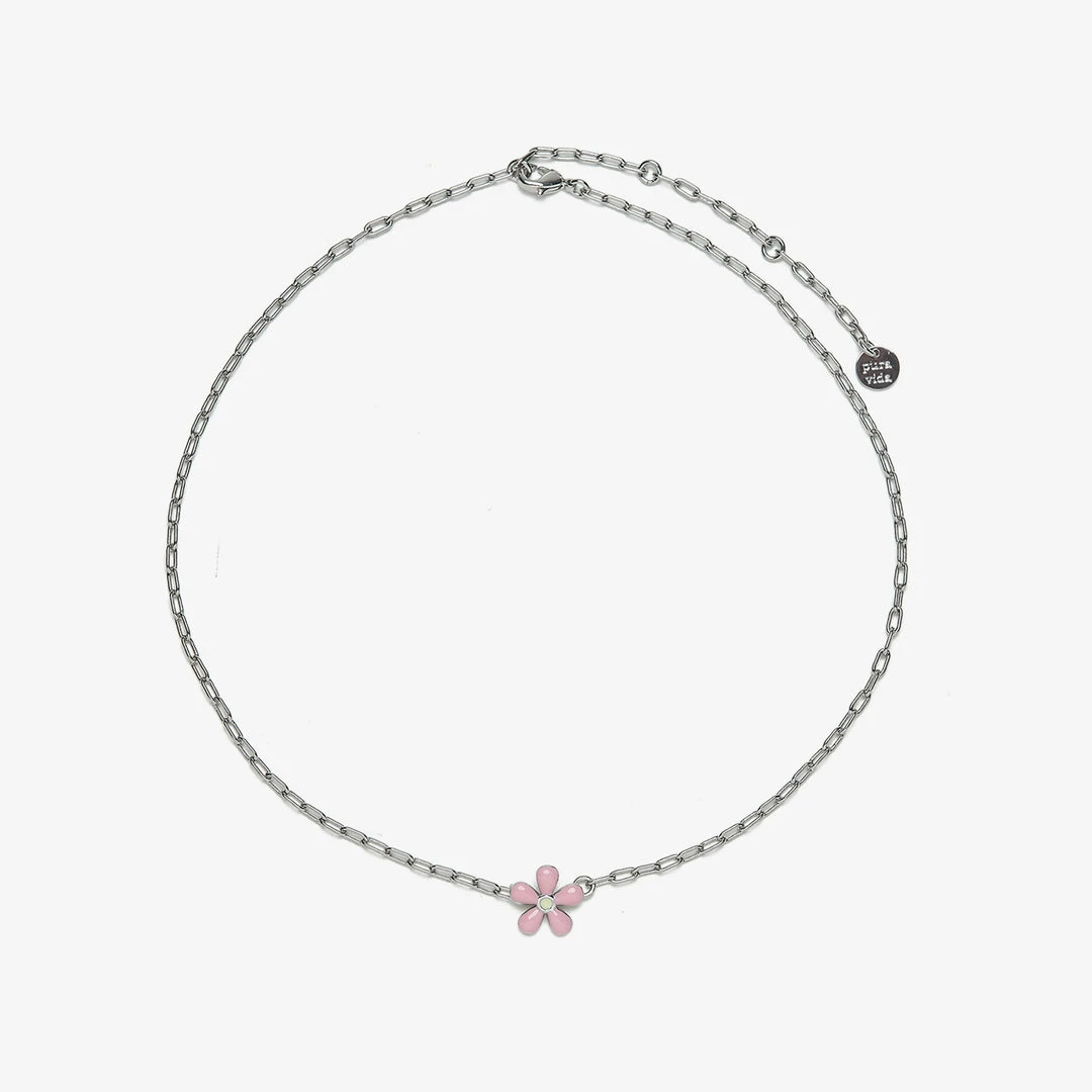 Flowers make everything betterβ just ask our Enamel Flower Paperclip Chain Choker. This warm-weather beauty is set on a silver chain and features a delicate flower dipped in enamel to look colorful (and super cute!).