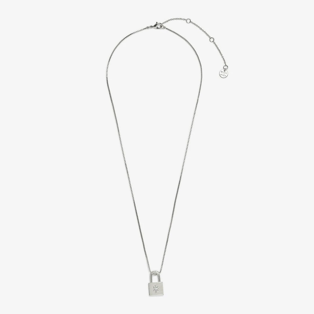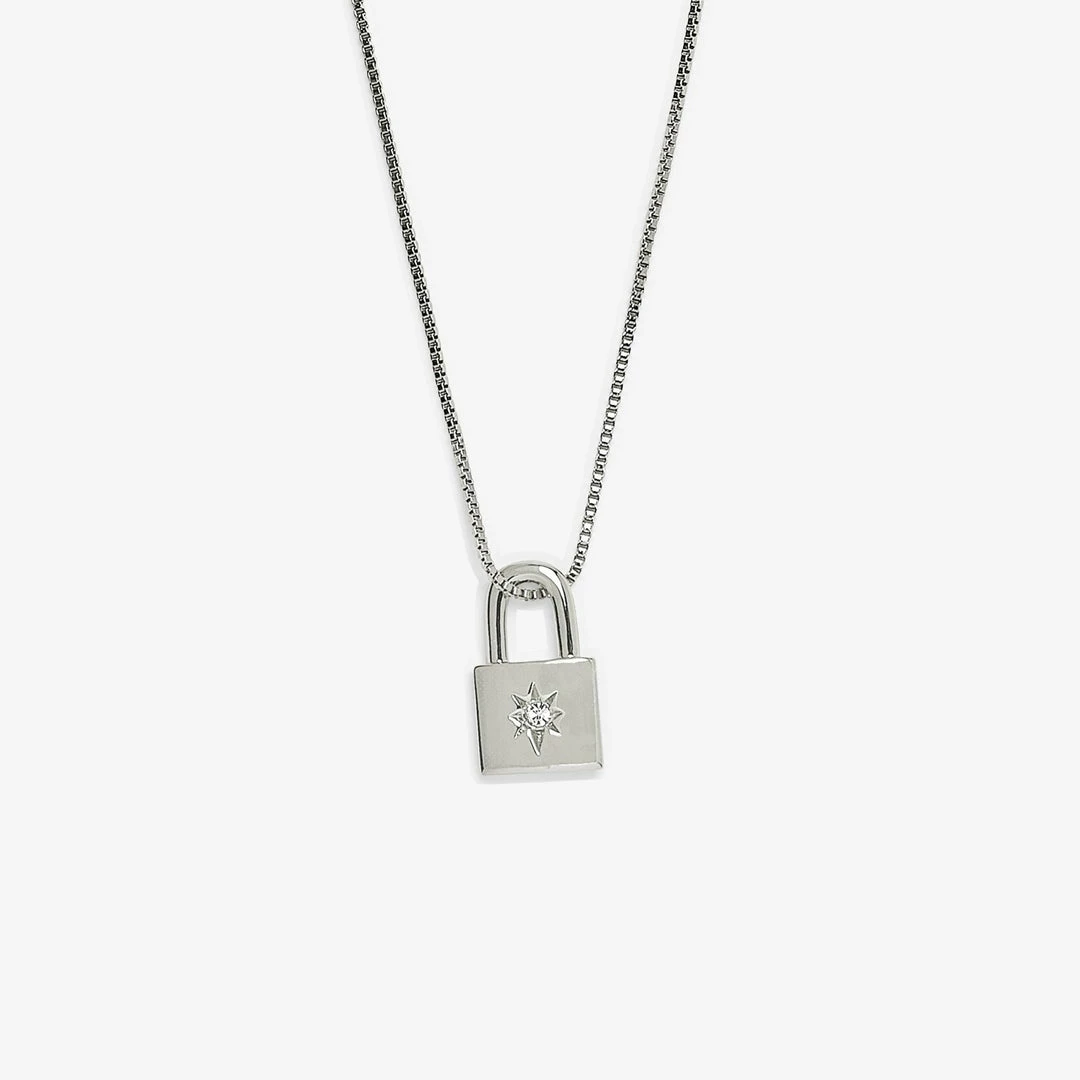 Our Lock Charm Pendant Necklace is key to creating an epic jewelry collection. It features a ball-chain design and dangling lock charm, with a rhinestone in the center to add a hint of sparkle.