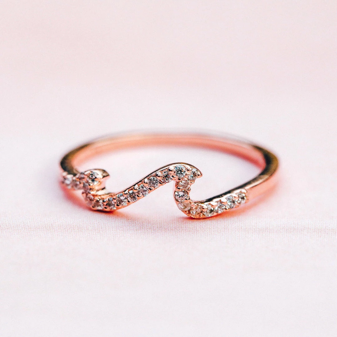 Add some sparkle to your surf style with our new Pave Wave Ring! This chic and shimmering design comes in two metal finishesโsterling silver and rose goldโwith a pave crystal-studded wave thatโs sure to make a splash.