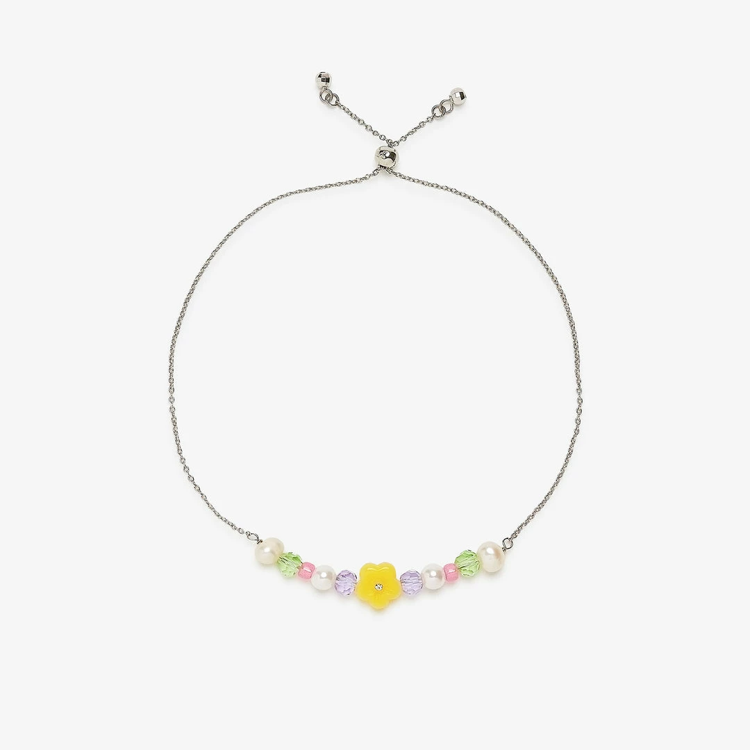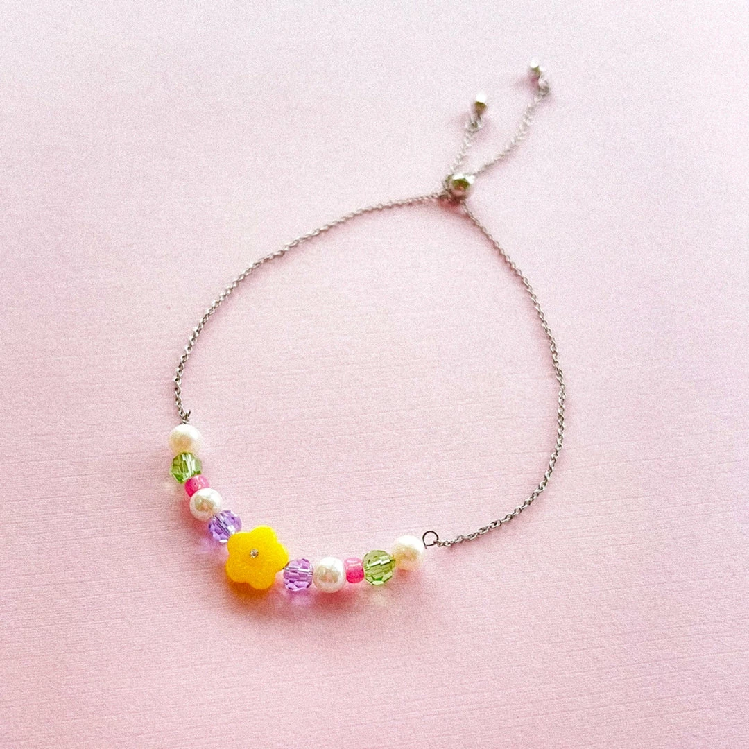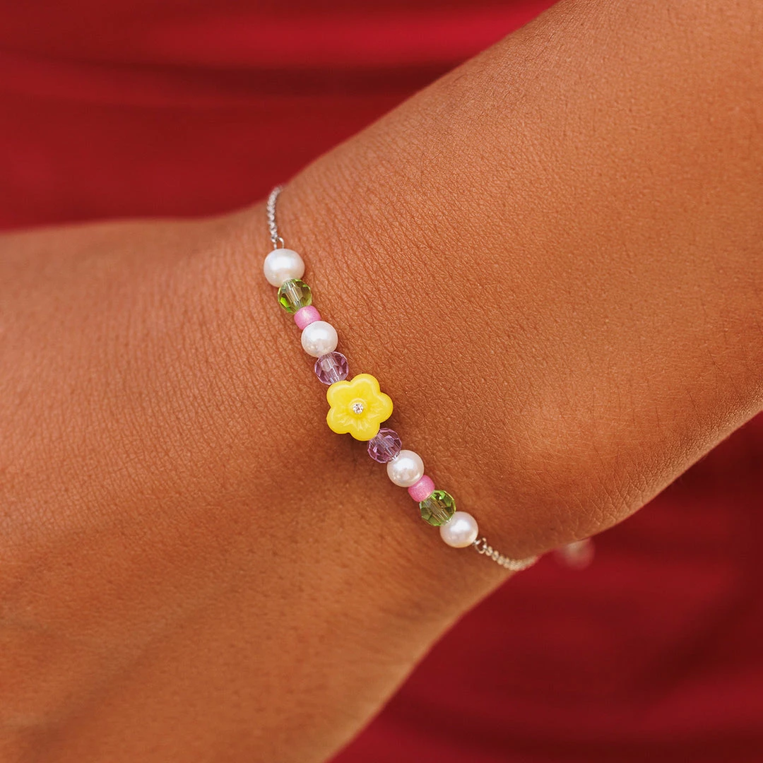 Flowers make everything betterβjust ask our Resin Flower & Mix Seed Bead Slider Bracelet! Set on a delicate silver chain, this dainty design features an enamel flower in the middle, surrounded by colorful beads and itty bitty pearls.