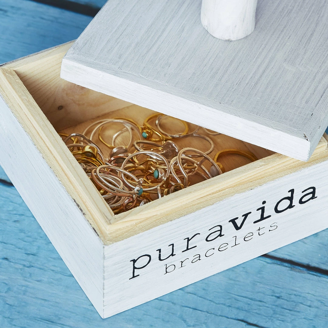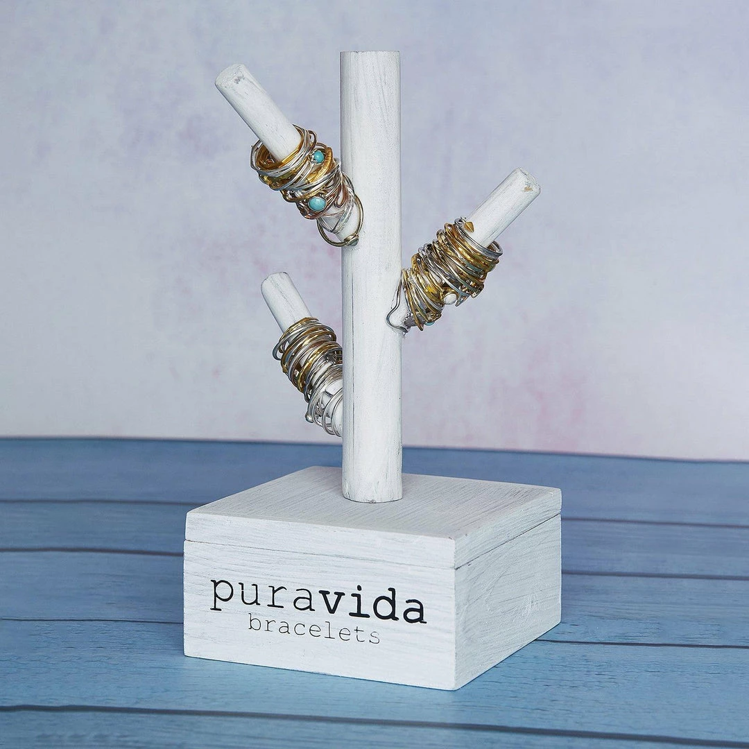 Have tons of PV rings and need a cute way to store βem? Thatβs where our Ring Tree Display comes in! Made with whitewashed wood and featuring the Pura Vida Bracelets logo, this chic storage piece even has a hidden compartment to keep all your favorite bracelets in, too.Β
