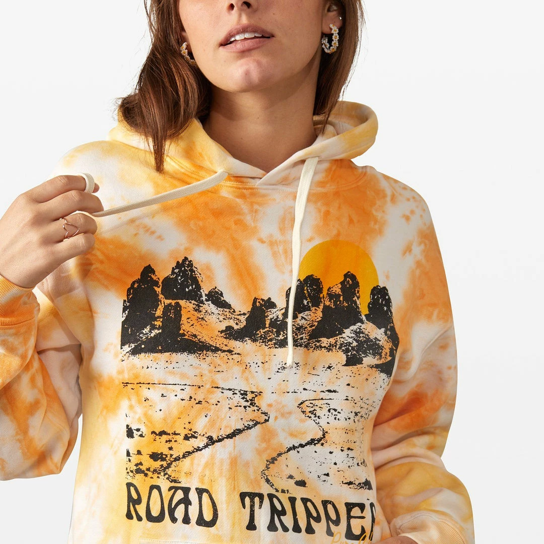 Retro vibes and road trip skies are written all over our new Road Tripper Hoodie! Inspired by that golden hour sunset on the horizon, this super cozy hoodie is painted in a multicolor tie dye and epic road trip graphic saying βRoad Tripperβ that youβll want to bring with you everywhere you travel! Side note: This tee will shrink for a perfect fit in all the right places after your first wash!