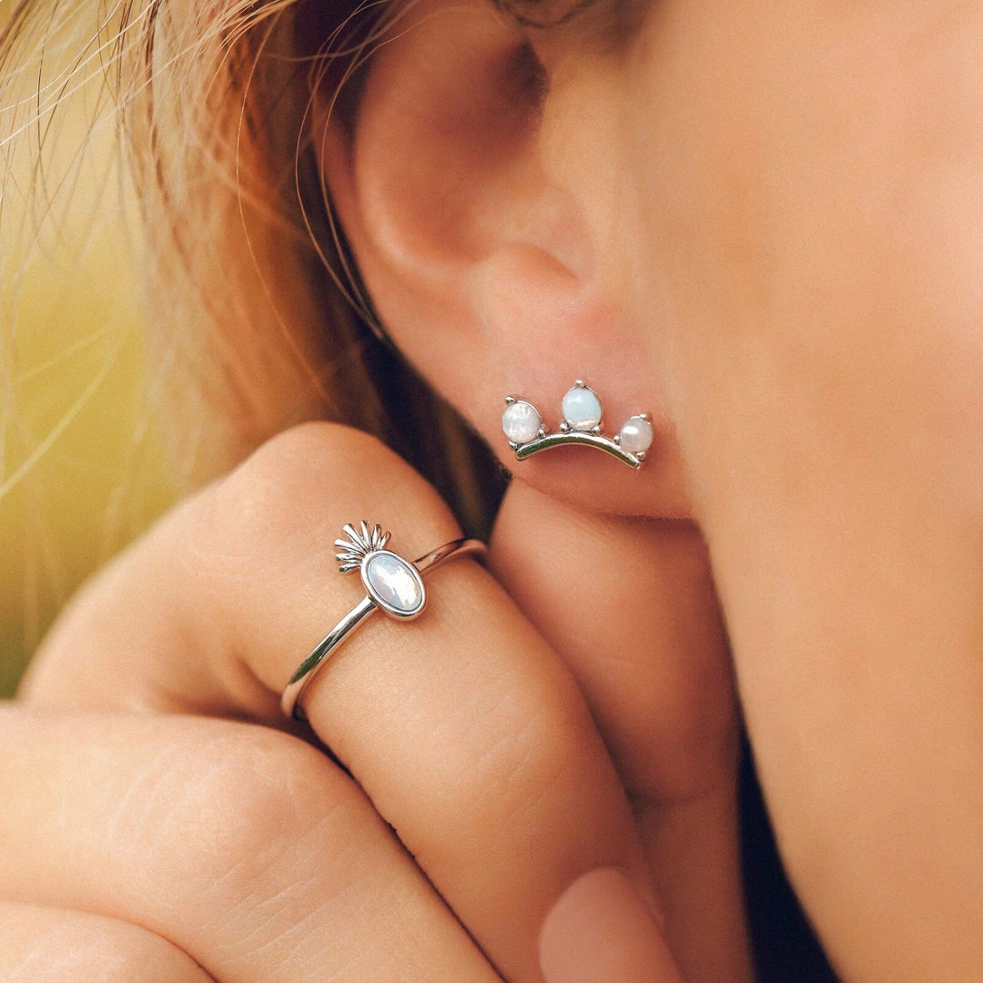 Our Crystal Cove set is sure to give you all the beachy feels. This fun set features a moonstone pineapple ring and pearl, moonstone and opal earrings that will add the *perfect* amount of sparkle to any look.