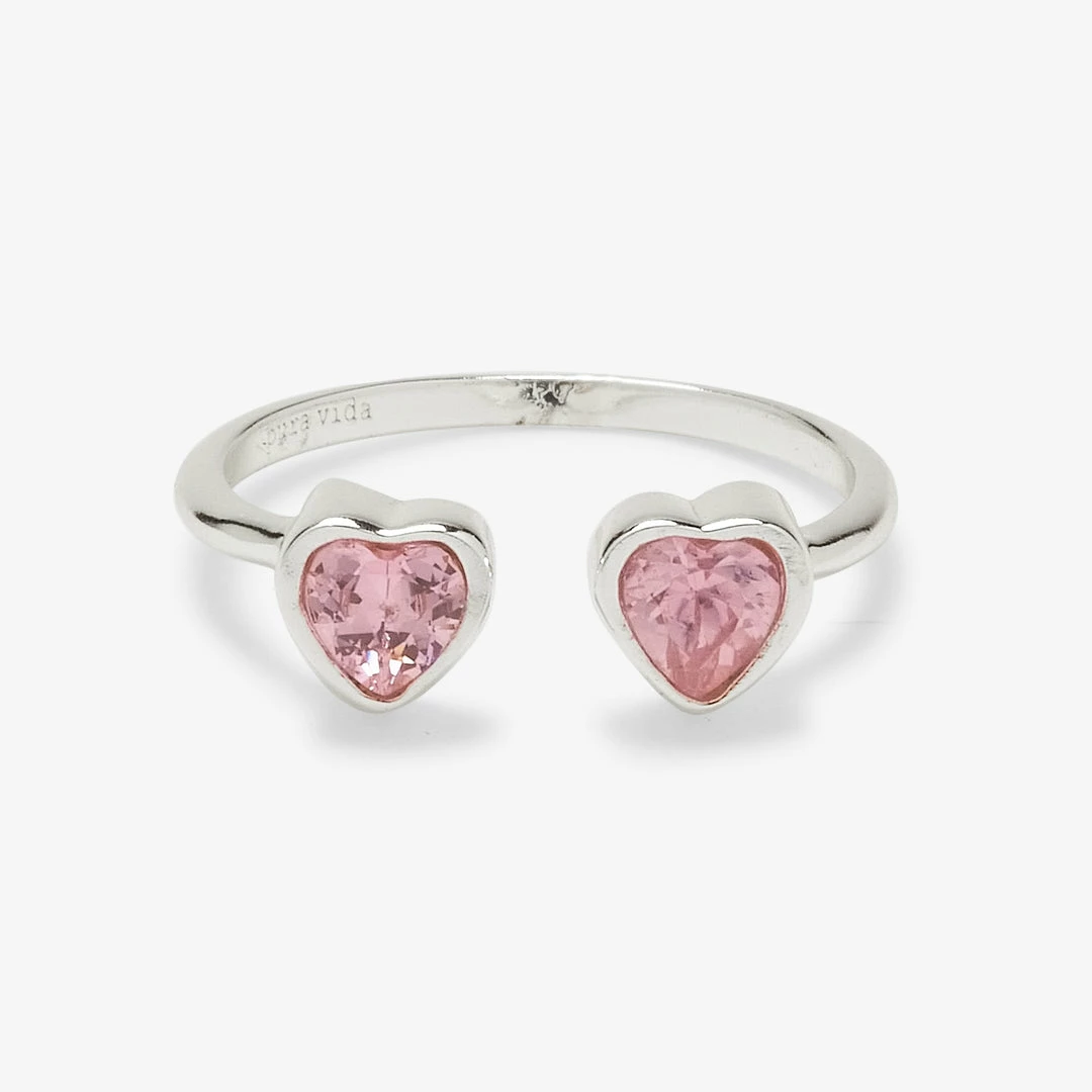 Nope, youβre not seeing double. Itβs just our Twin Hearts Gemstone Ring! This open cuff design features a silver band and set of pink, heart-shaped stones for a look that literally everyone will love.