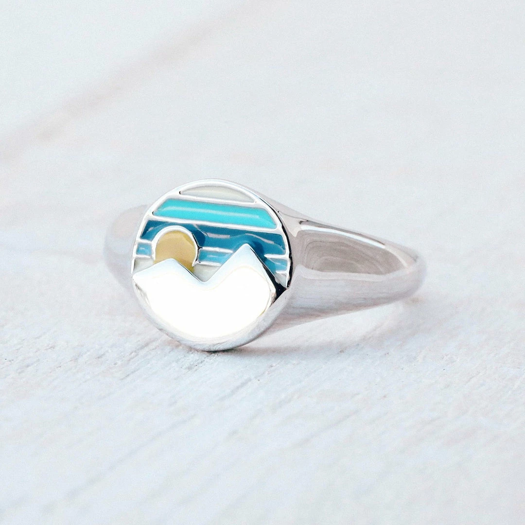 Weβd move mountains to get our hands on the Twin Peaks Signet Ring! This intricate design comes in a sleek silver finish, with a cute and colorful enameled scene of the sun rising over the mountains. Pair it with our other Twin Peaks styles for an adventure-ready look.