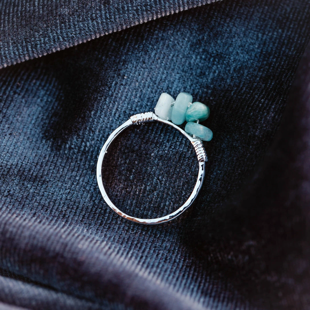 Say buh bye to bad vibes and hellooooo to calming energy with our Wire Wrapped Gemstone Ring. This stunning silver style features a trio of aqua blueΒ amazoniteΒ stones, which help you feel balanced and serene.