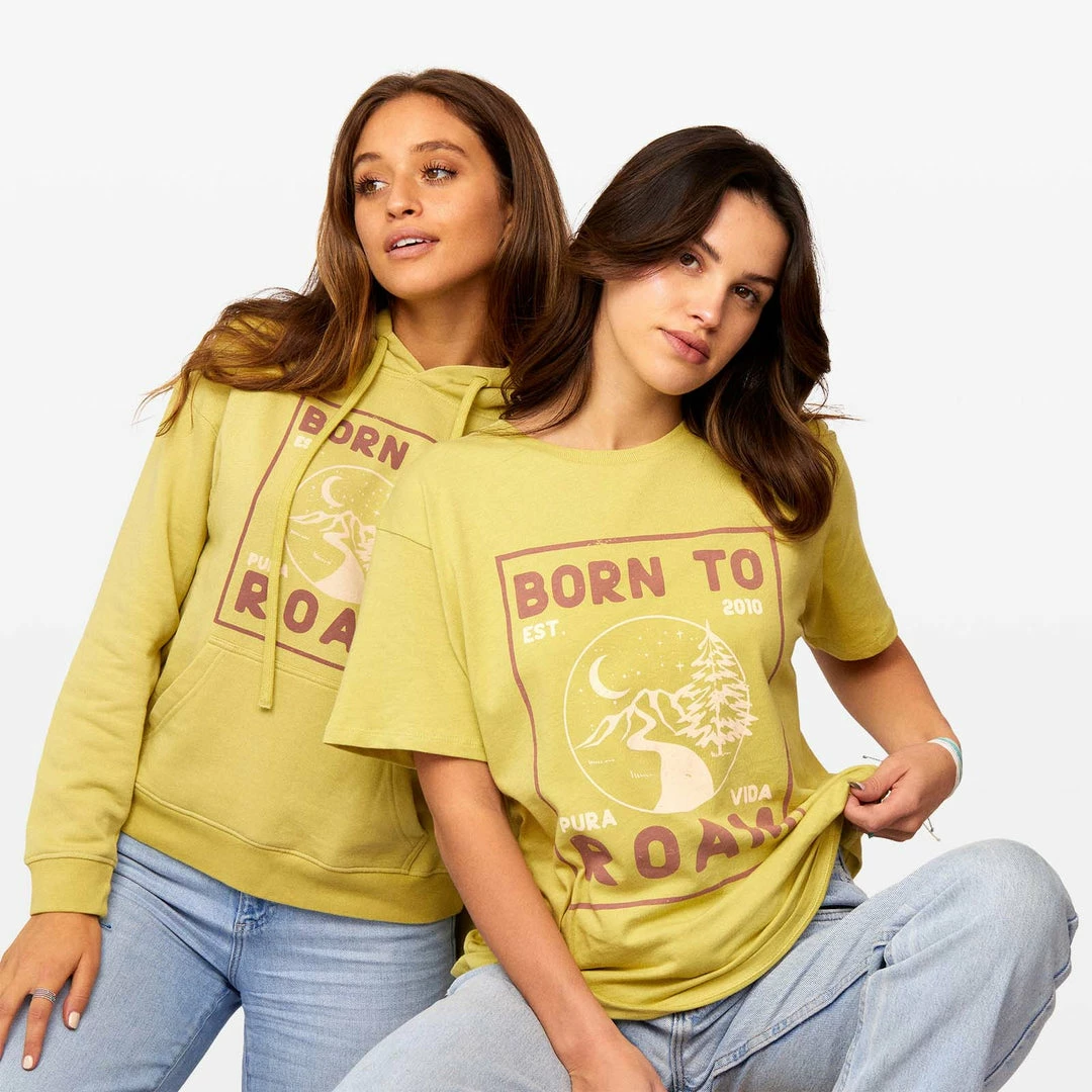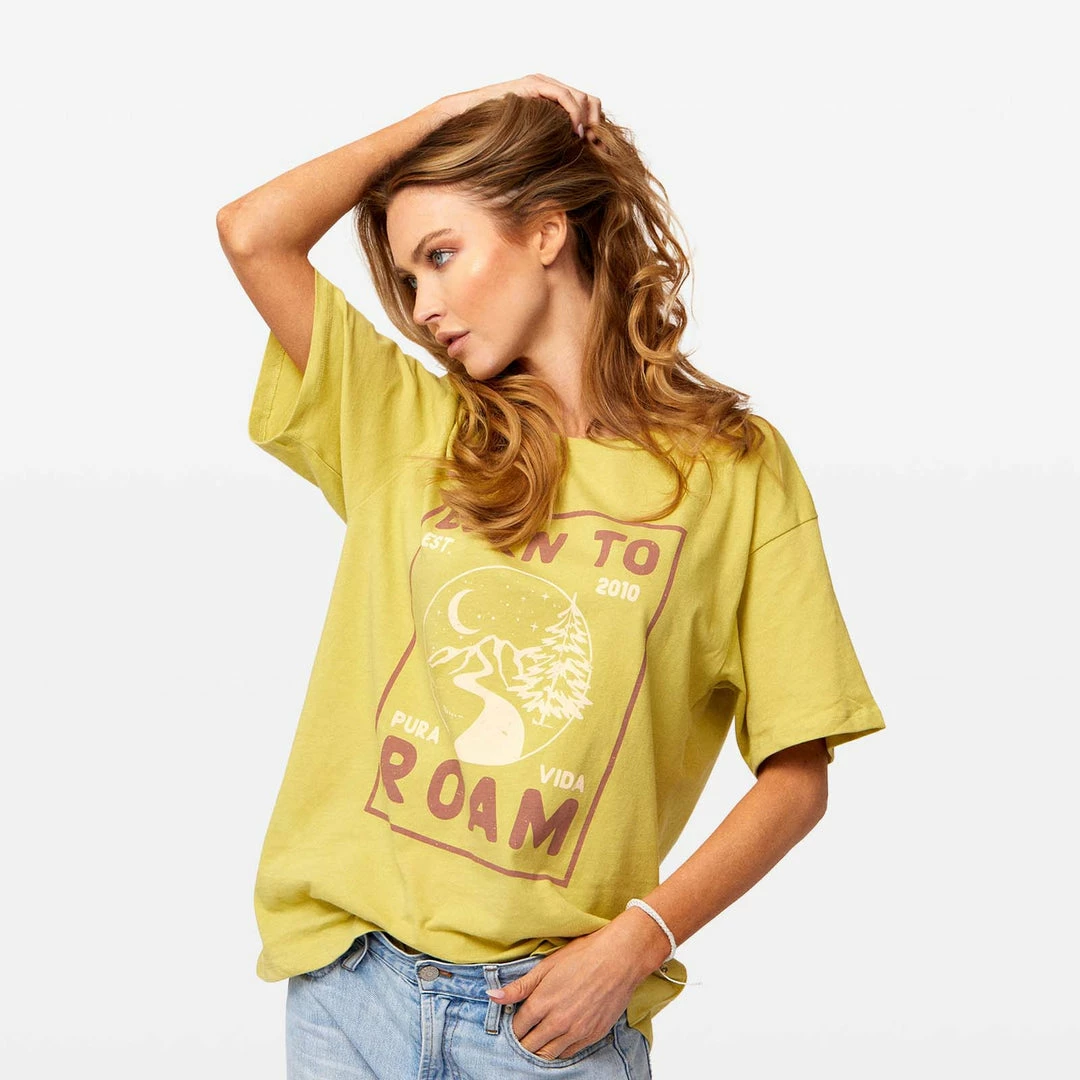 Hit the road in our Born to Roam Classic Crewneck Tee. In a gorgeous pistachio green hue, this short-sleeve style features a vintage-inspired graphic that gives off major outdoor vibes.Β