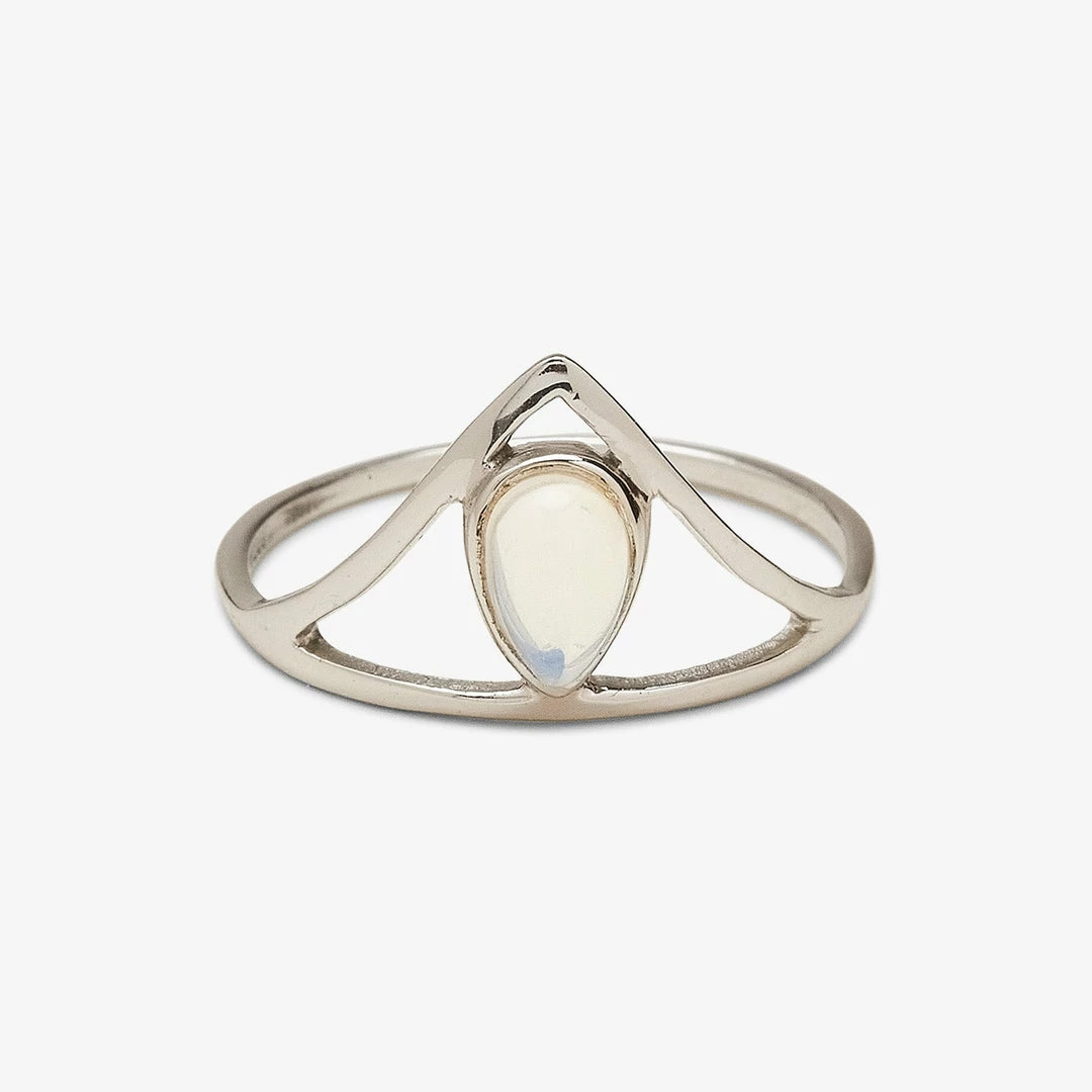 Shine brighter than a star with this celestial Chevron Stone Ring. This dainty silver band features a bezel set teardrop-shaped moonstone to make your ring stack GLOW!