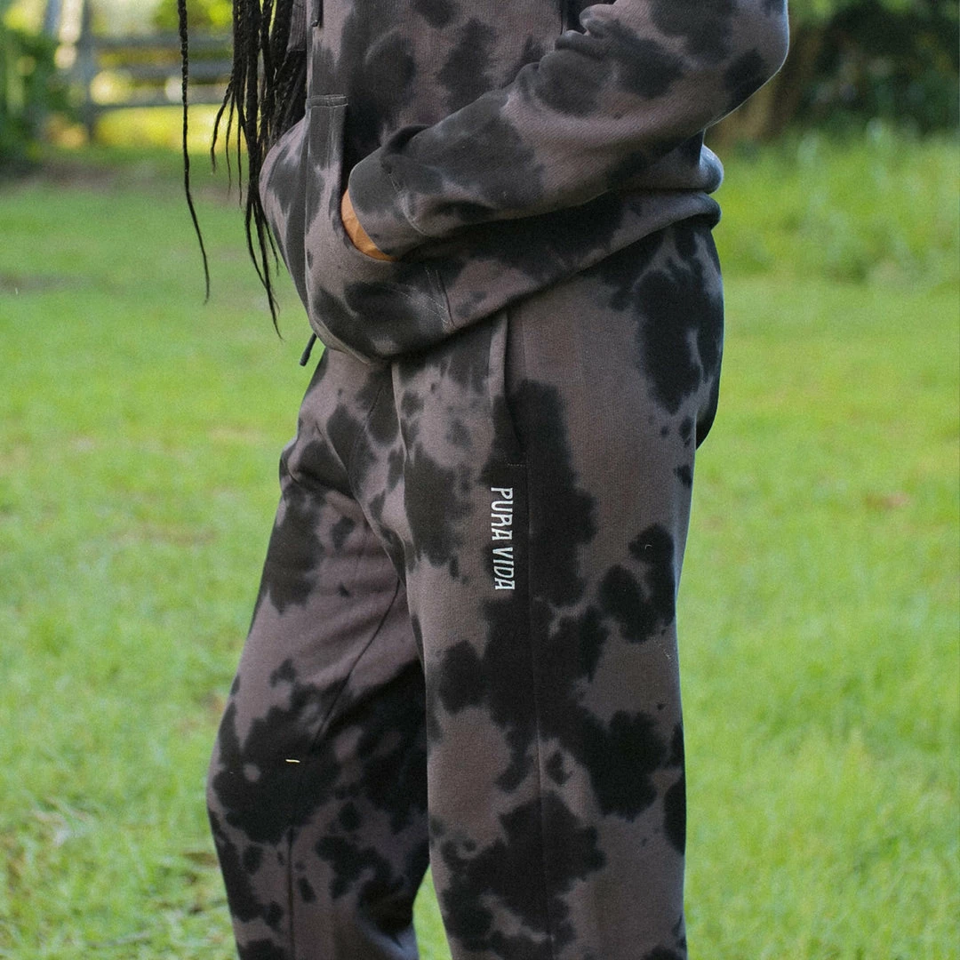 Life is better under palm trees! Lay back and get cozy in our Palm Trees Sweatpants in our custom black tie-dye print. These classic sweatpants have a loose relaxed fit that make them flattering for every figure.