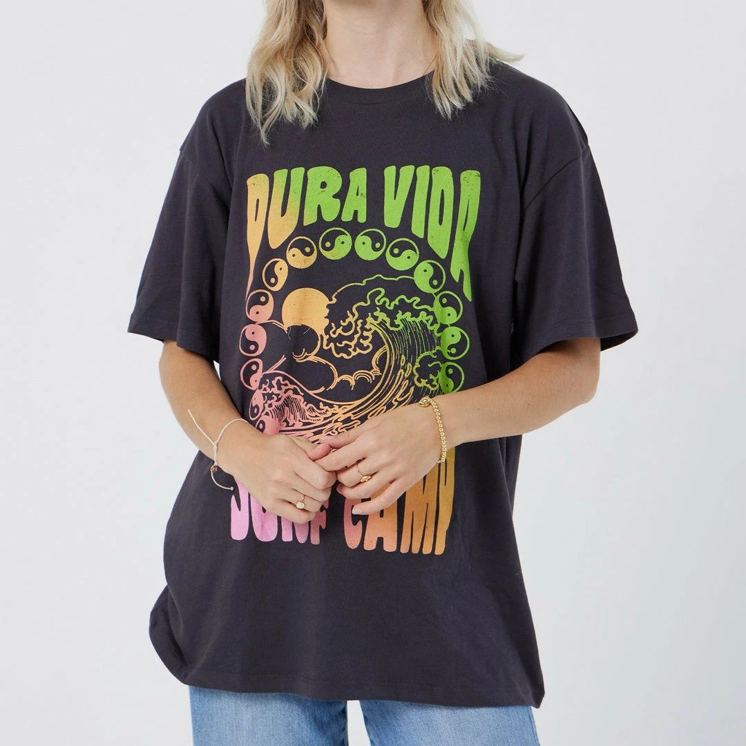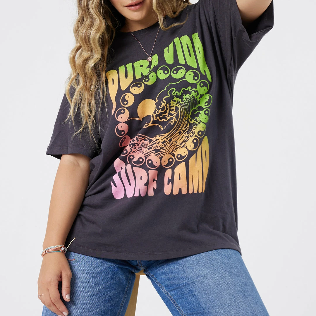 Surfs up! The Surf Camp Tee is the PERFECT t-shirt transition into fall. The vintage beach vibes are complete with a Pura Vida Surf Camp logo on the back.Β Donβt forget, after your first wash this tee shrinks in all the right places for a perfect fit!