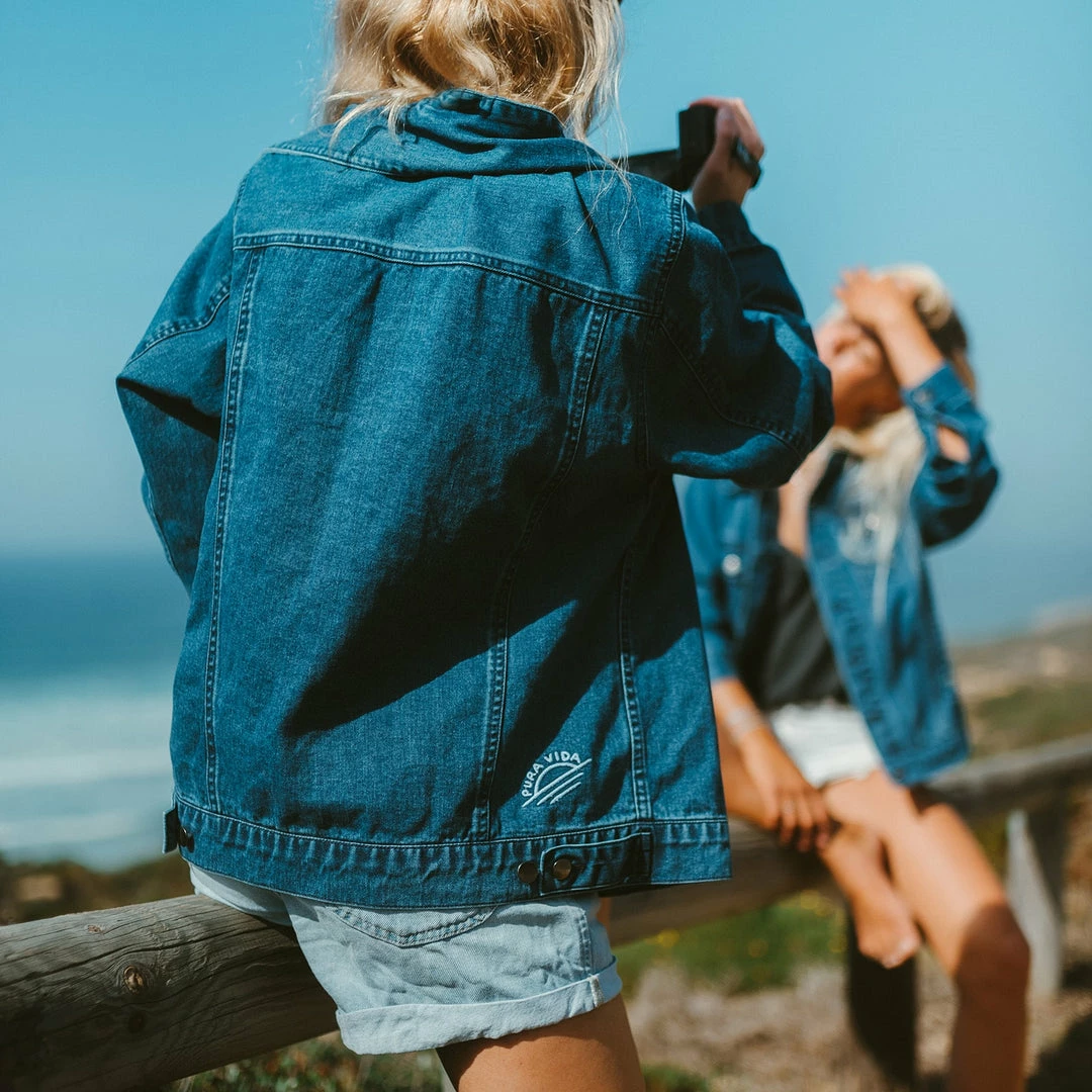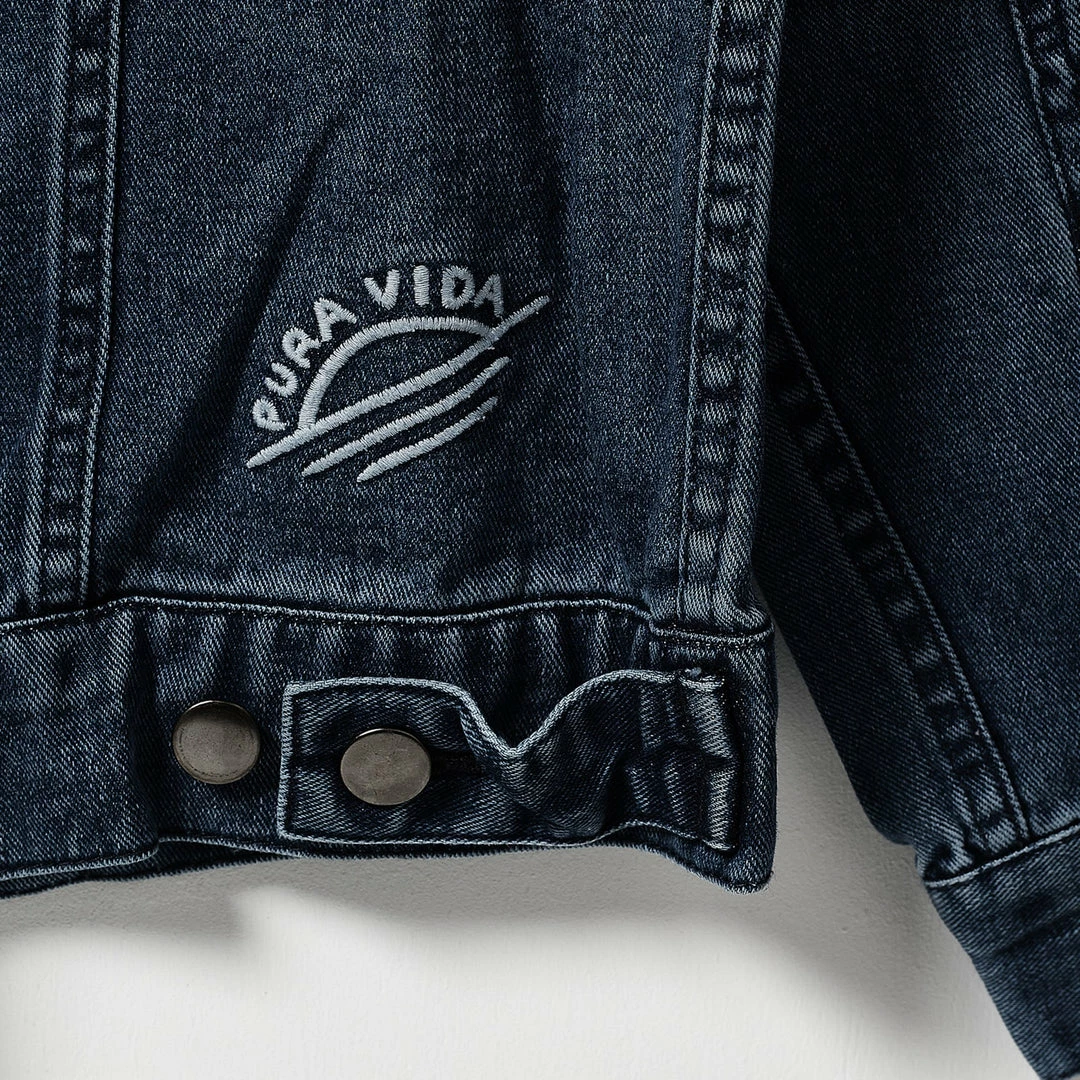 Bring your look together with this versatile, goes-with-everything Denim Jacket! A classic staple piece in any closet, this jacket features an embroidered Pura Vida logo on the front and back for the perfect worn-in feel.