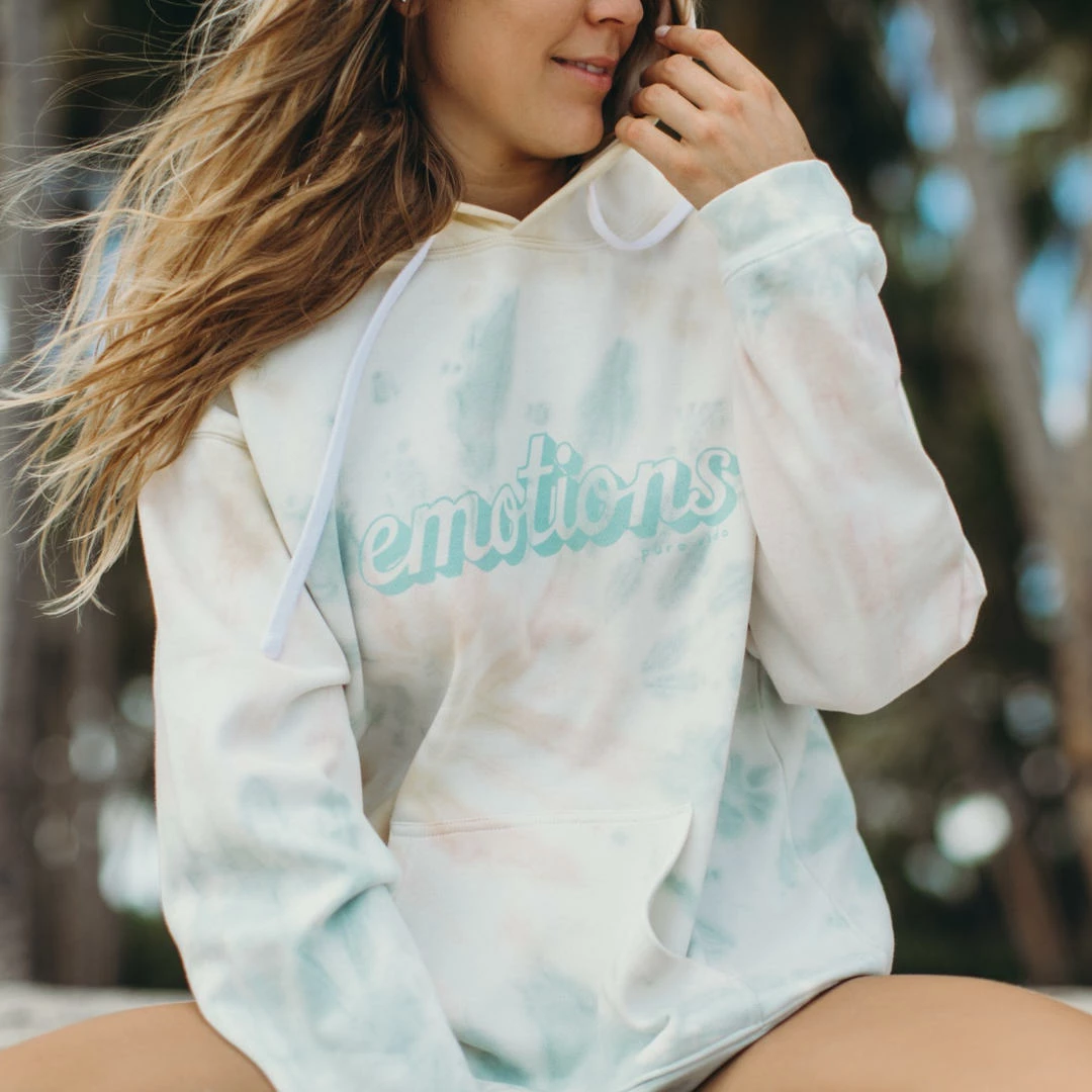 Listen to your emotions with our new Emotions Hoodie! In a pastel tie dye wash this cozy sweatshirt has βemotionsβ written (all) over it! Donβt worry, after your first wash this one shrinks in all the right places for a perfect fit!