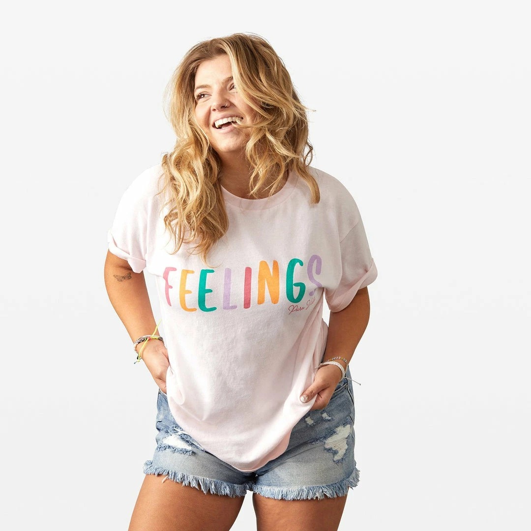 Feel all the feels with our new Feelings Tee! This short sleeve comes in a light pink wash with the word βFEELINGSβ written across in pretty pastels. Never be afraid to talk about your feelings when youβre rockinβ this shirt! PS, after the first wash this one shrinks in all the right places for a perfect fit!