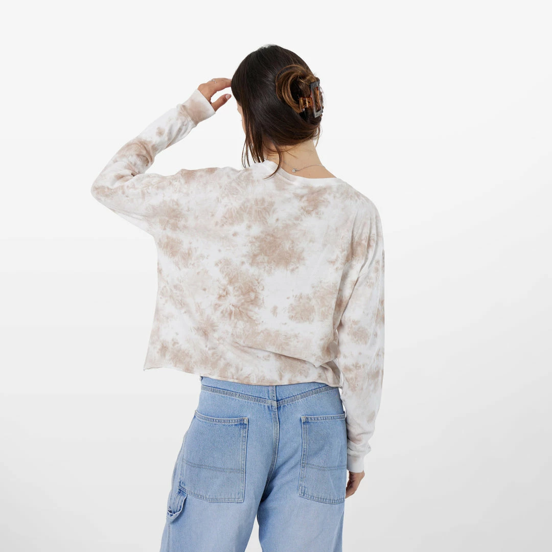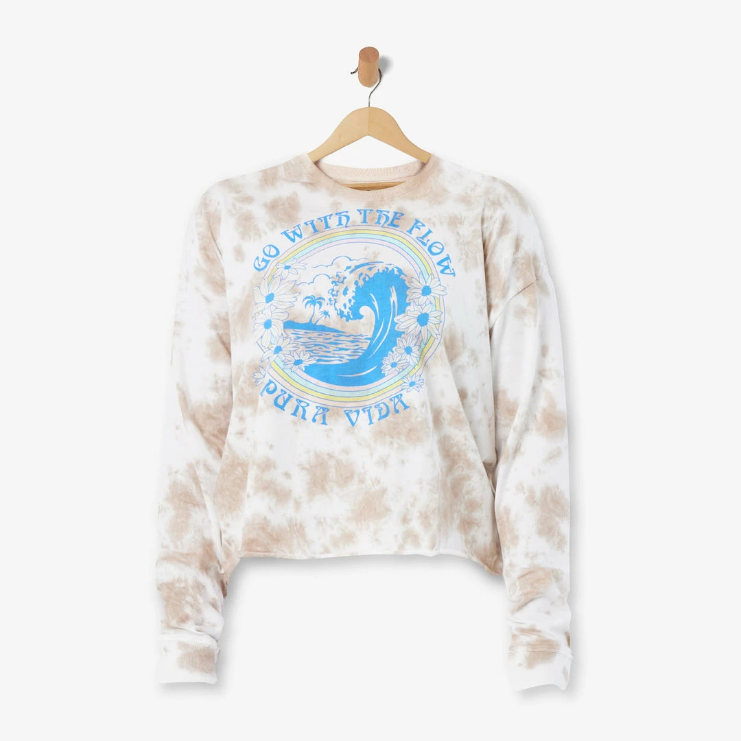 The ideal transition piece between summer and fall, this Go With the Flow Long Sleeve Boxy Long Sleeve Tee in our customer tie-dye print is absolutely timeless! This cozy piece features a vintage-inspired wave graphic on the front.