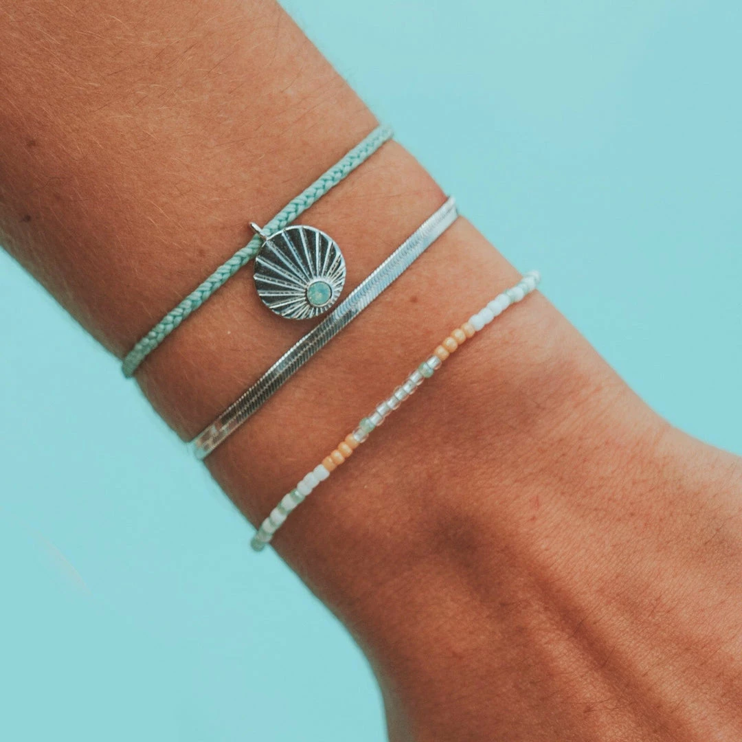 Theย Key West Pack will give you summer vibes all year around!ย This three-piece setย includes a beautiful sunburst charm and turquoise stone that will make it yourย new favorite stack!