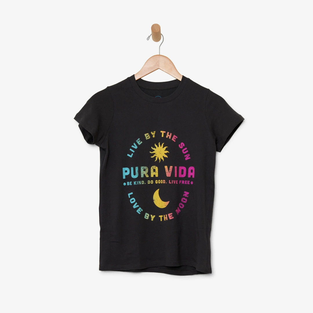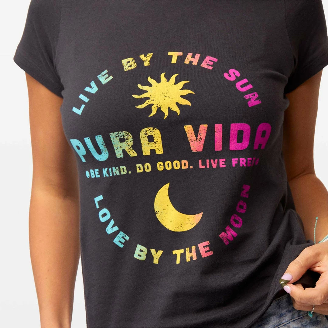 Rep the PV lifestyle in our Live by the Sun Fitted Tee. This body-hugging design flatters in all the right places and features a distressed graphic for an effortlessly vintage look.