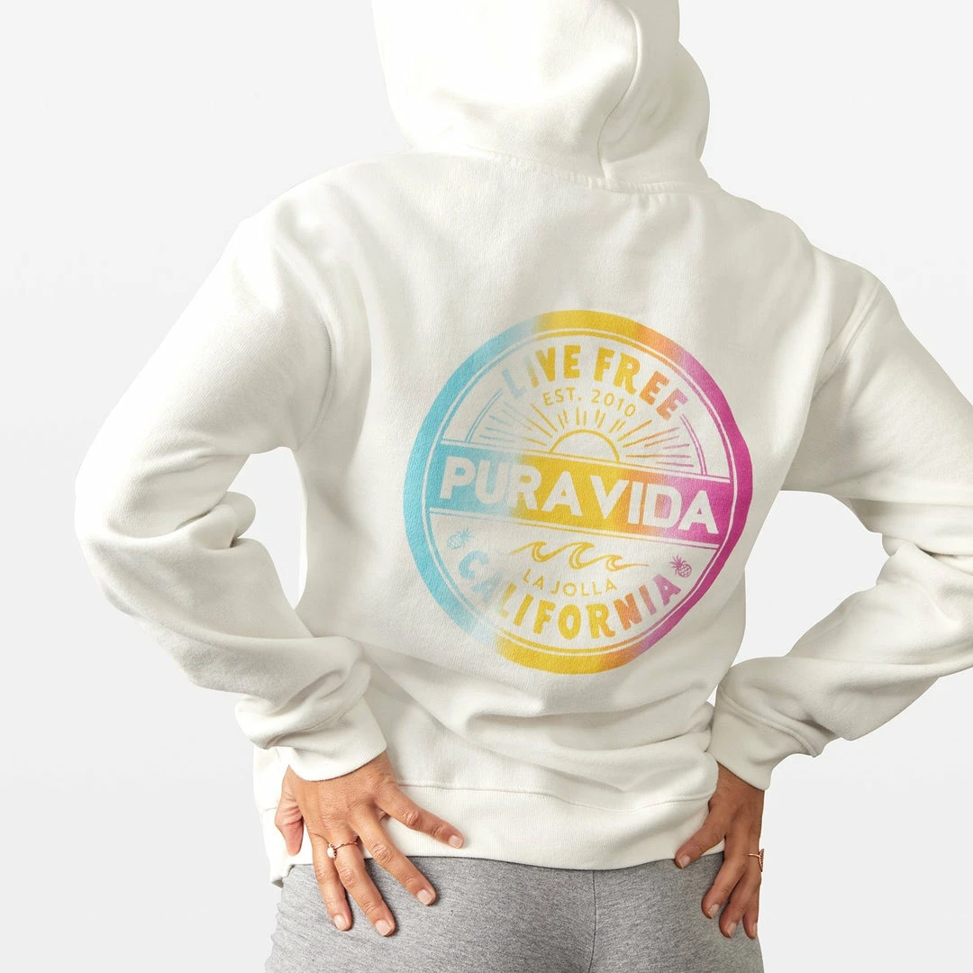 A classic of all classics, our Live Free Hoodie is an absolute essential! An epic Live Free graphic on the front and back of this white vintage hoodie makes this a super comfy staple! Donβt forget, after your first wash this one shrinks in all the right places for a perfect fit!