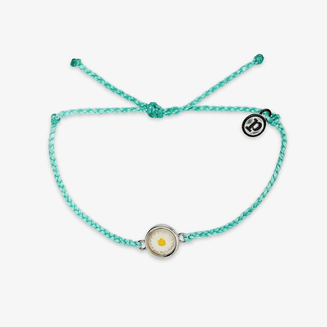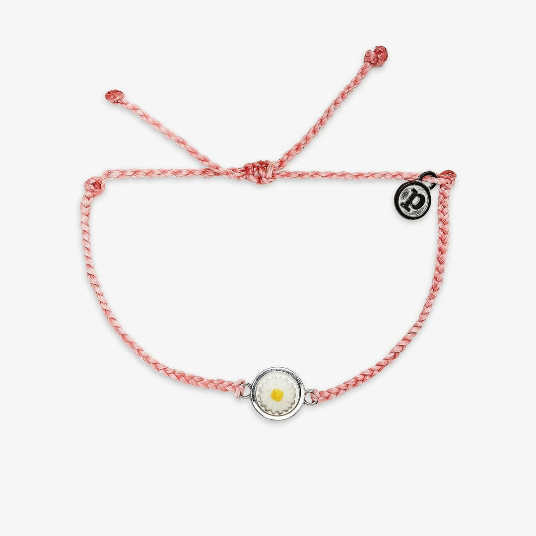 We can’t do summer without daisies! Our new Meadow Charm Bracelet features a dried resin daisy pendant in silver or rose gold on a bitty braid bracelet that comes in the perfect summer tones you can stack with everything.
