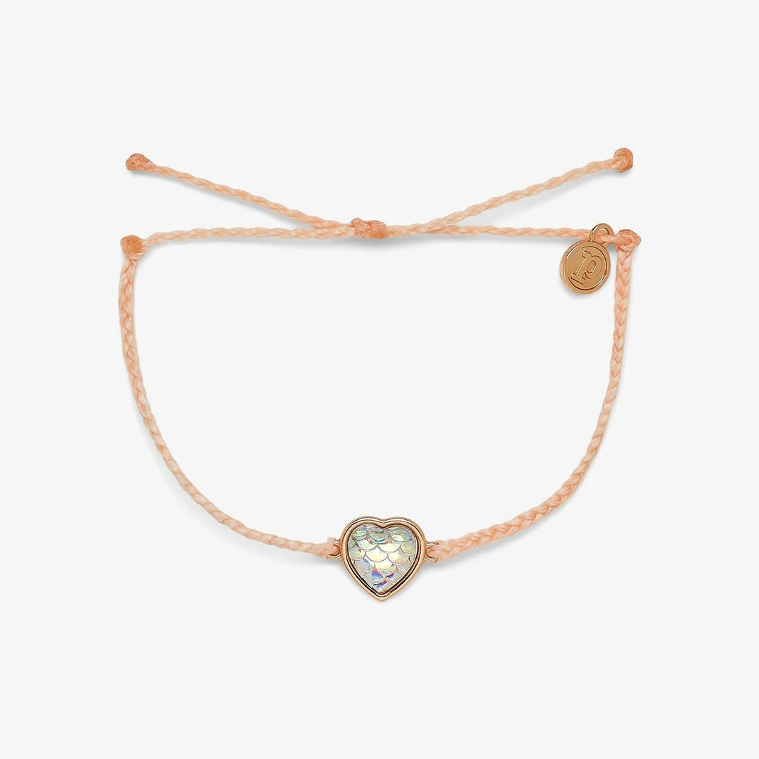 If you looooove the ocean, then you’ll adore our Mermaid Heart Charm Bracelet! This bitty braid design comes in four fresh hues and two metal finishes, with a dainty heart charm featuring an iridescent, scale-like effect.