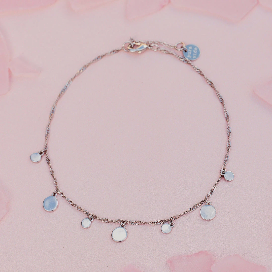 Sometimes itβs the smallest details that make the biggest difference. Our Mixed Mini Coins Chain Anklet features two sizes of dangling coin charms, with a silver twisted rope chain for a little extra dimension.