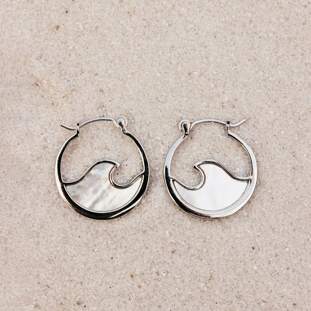 Ride waves when you add these brand newΒ Mother of Pearl Mini Wave Hoop Earrings to your collection. Available in a silver finish and filled with a mother of pearl inlay, these earrings are the perfect style for a simple beach day. Your ears will thank you!
