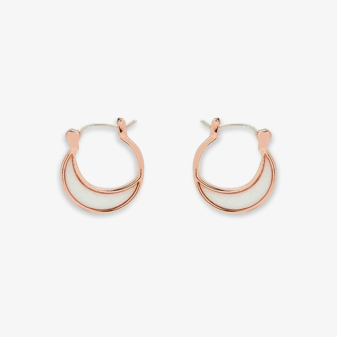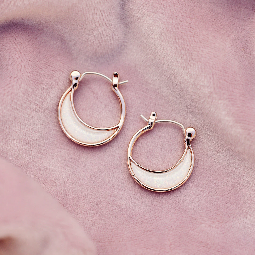 An important symbol in ancient cultures, the crescent moon represents new beginnings and optimism. The Opal Crescent Hoops are made up of a crescent moon motif filled with opal resting in a chic rose gold frame.