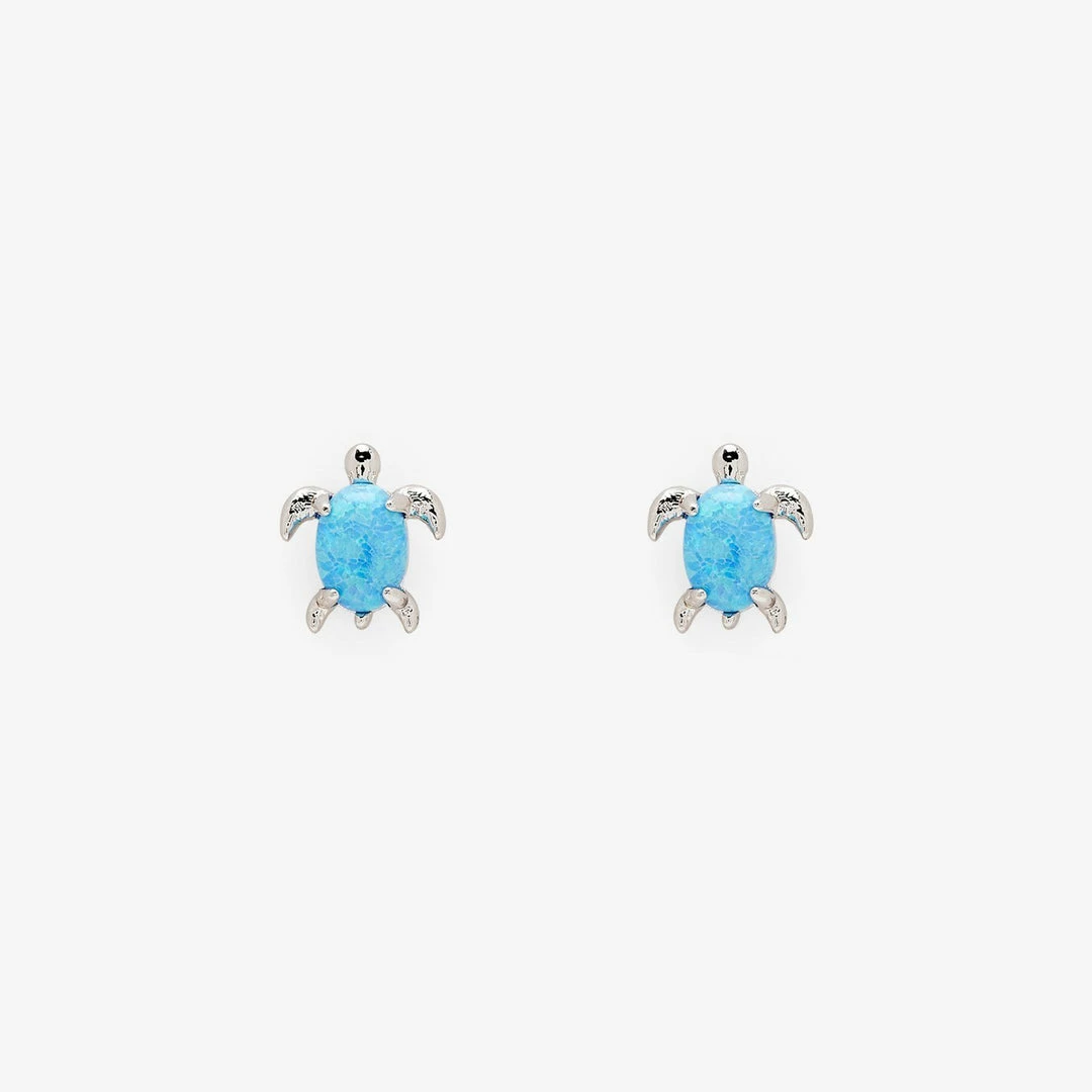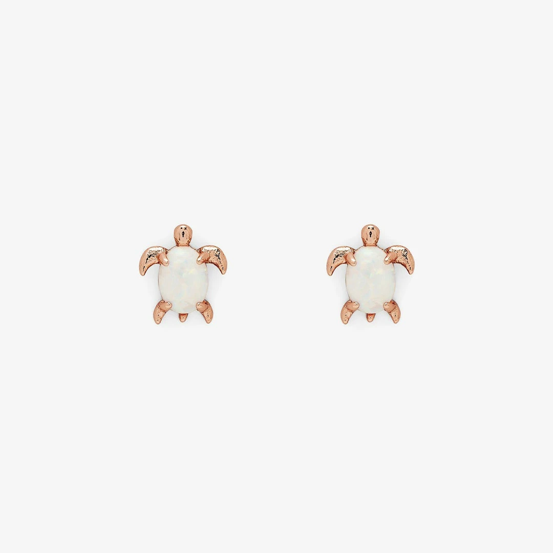 Take it slow in our Opal Sea Turtle Earrings! This cute sea turtle design gets extra chic with a sparkly opal center in blue or white on rose gold or silver studs.