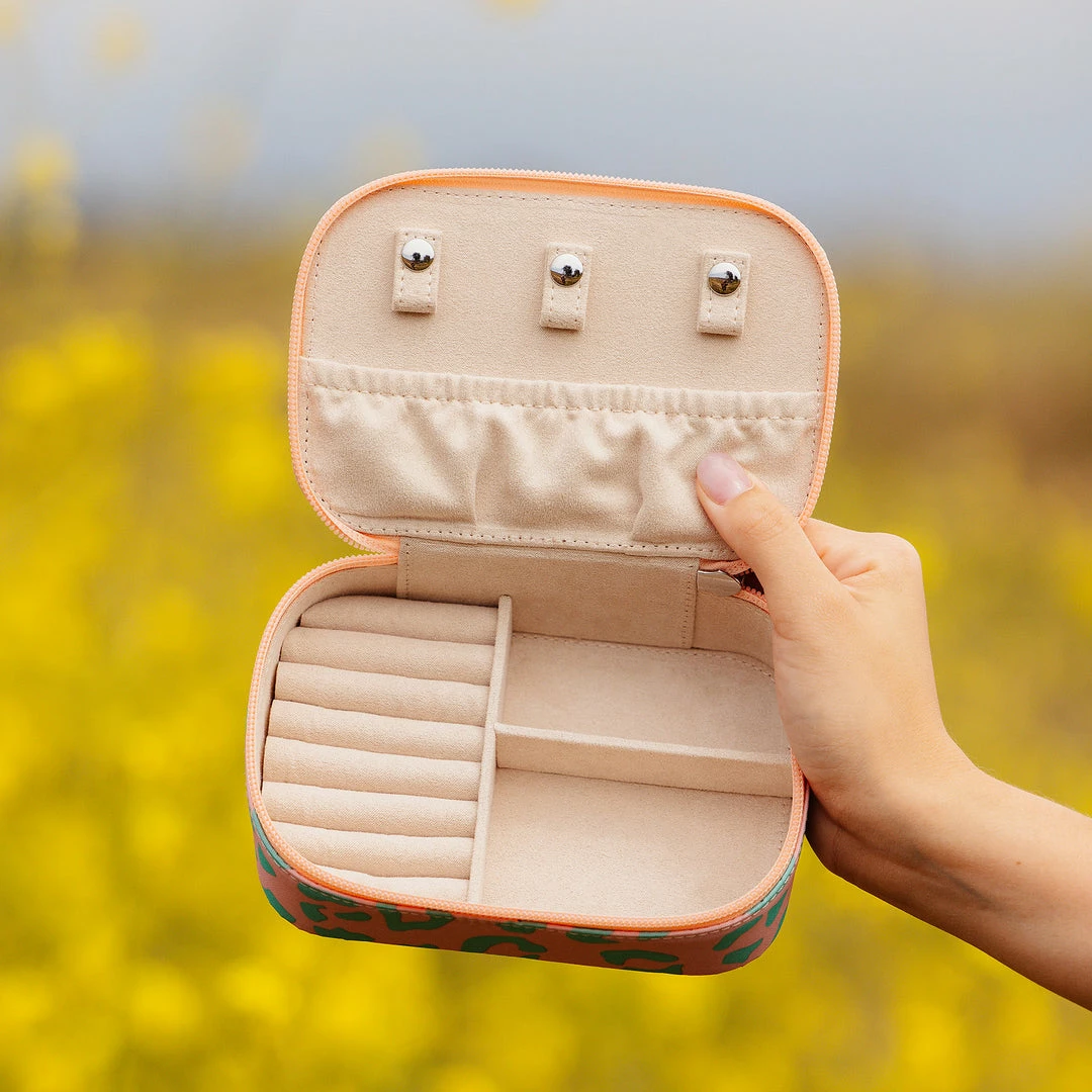 Embrace your inner wild child with our Pastel Cheetah Jewelry Case. Perfect for storing alllll your PV styles, this zippered case comes in a retro pink-and-green color combo, with a β70s-inspired Pura Vida logo so you can rep the best.