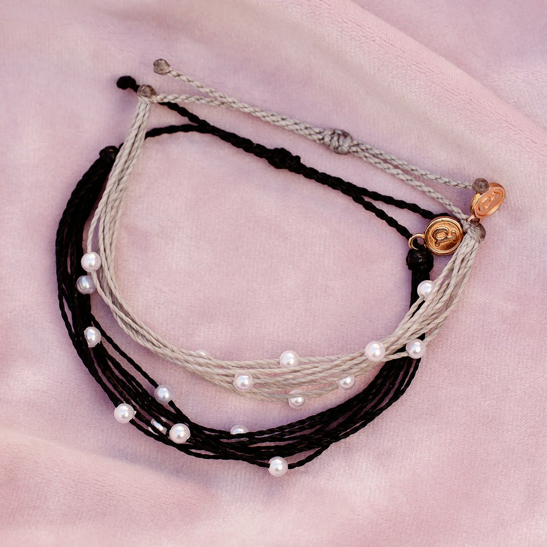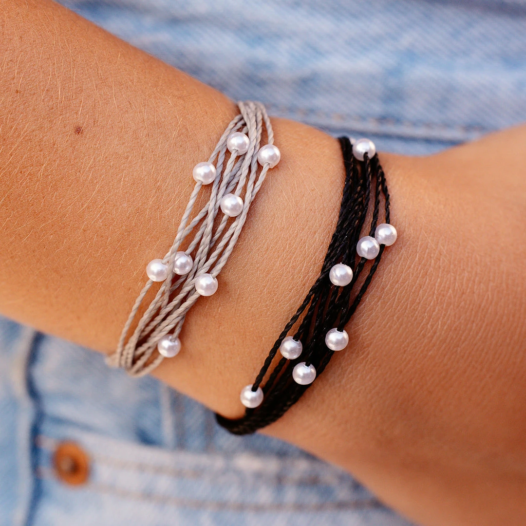 We gave our best-selling Malibu bracelet an update you’re sure to love! Available in two string shades—black and light grey—this multi-strand style is dotted with delicate pearl beads that are oh-so-charming.