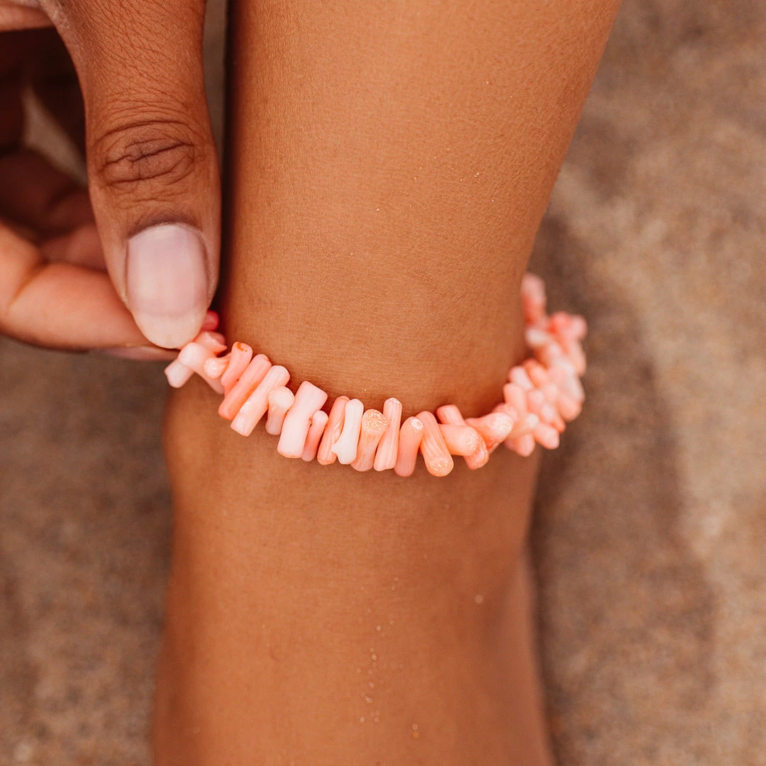 Nothing feels better than your toes in the sand and a cute style on your ankle! Our Pink Coral Chain Anklet features a continuous strand of pink coral chips for a pop of color that brightens up any beach day.