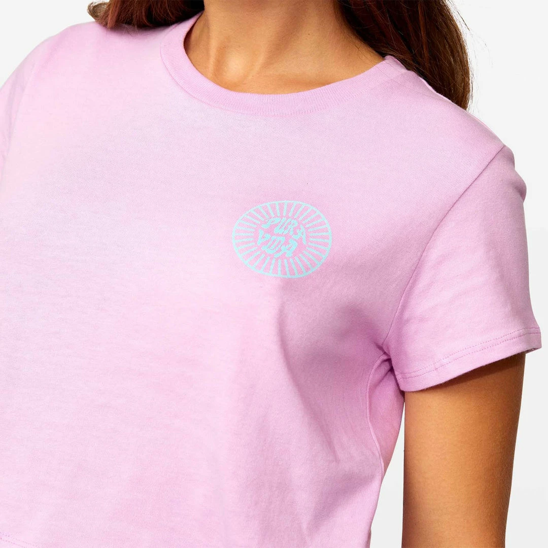 Things are looking bright, thanks to our PV Sun Logo Crop Tee. Available in a spring shade of orchid or vintage black, this cropped style features a groovy sun-inspired Pura Vida logo on both the front and back. Toss it over your swimsuit, or pair it with your go-to denim cutoffs.