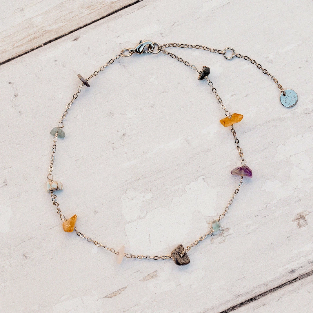 Nothingβs cooler than colorβat least when it comes to our Rainbow Chip Chain Anklet. This vibrant design features a variety of genuine gemstone chips, including Aqua Chalcedony, Rose Quartz, Citrine, Amethyst, Lapis and Turquoise.