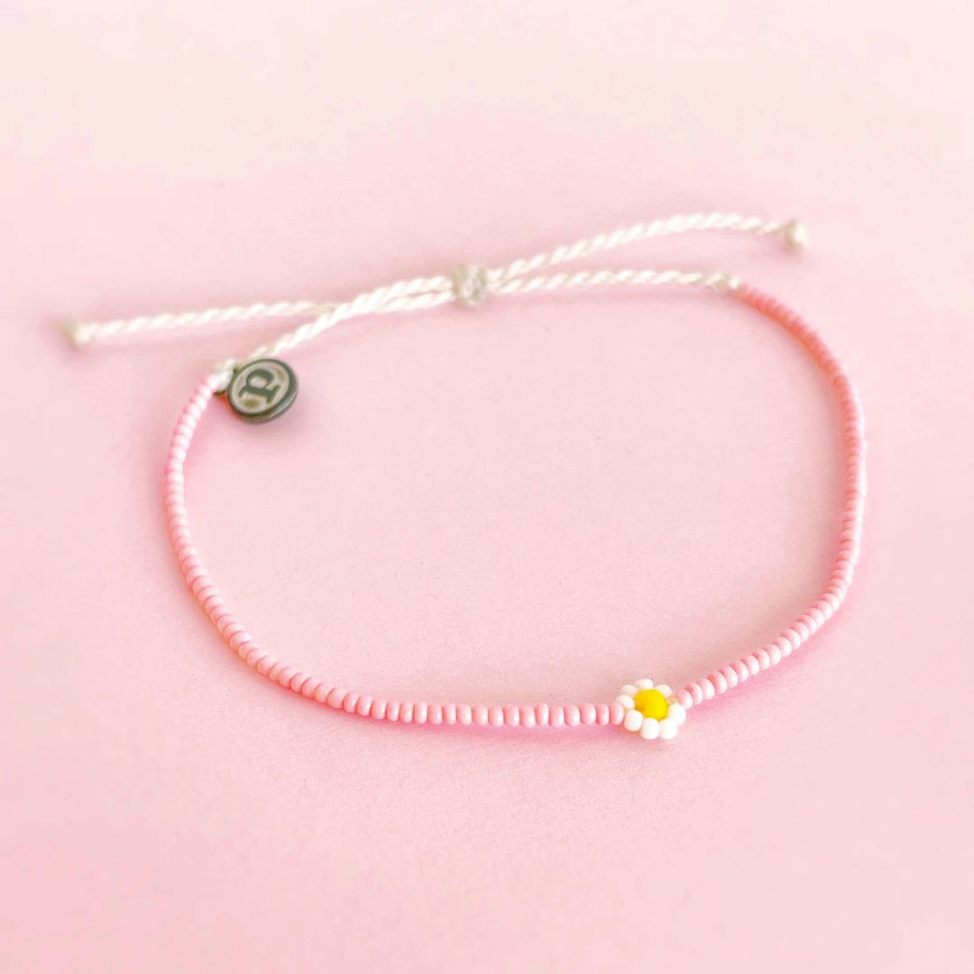Get a daisy—er, dainty—look with our Spring Daisy Seed Bead Bracelet. Set on a bitty braid base, this super-girly style features a strand of baby pink seed beads and an aww-dorable beaded daisy charm.