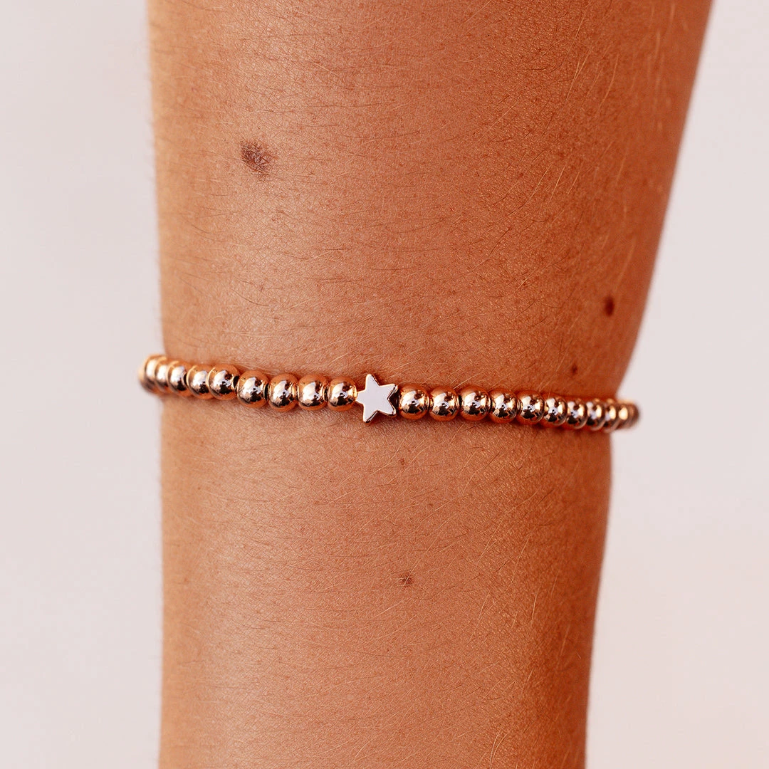 The perfect bracelet does not exi….oh wait, yes it does! The Star Metal Stretch Bracelet is sure to turn heads during your next beach walk. Made with gold-plated beads and a stunning star charm hanging from the center, this bracelet is an essential piece for your stack!