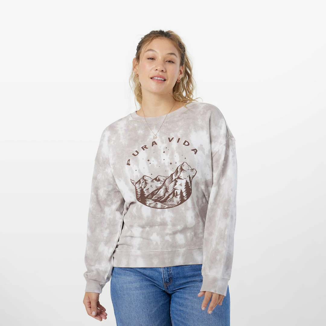 Sometimes all you need is to lay under the stars in the Stars Above Oversized Crew Fleece in a custom tie-dye print. This vintage-inspired sweatshirt features a mountain and stars graphic on the front, helping you channel all the zen vibes!