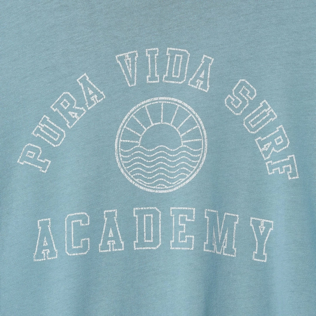 Get schooled in cool with our Surf Academy Tee. Available in pale blue, this university-inspired design features bold block lettering, with a sun and wave logo for a killer look.