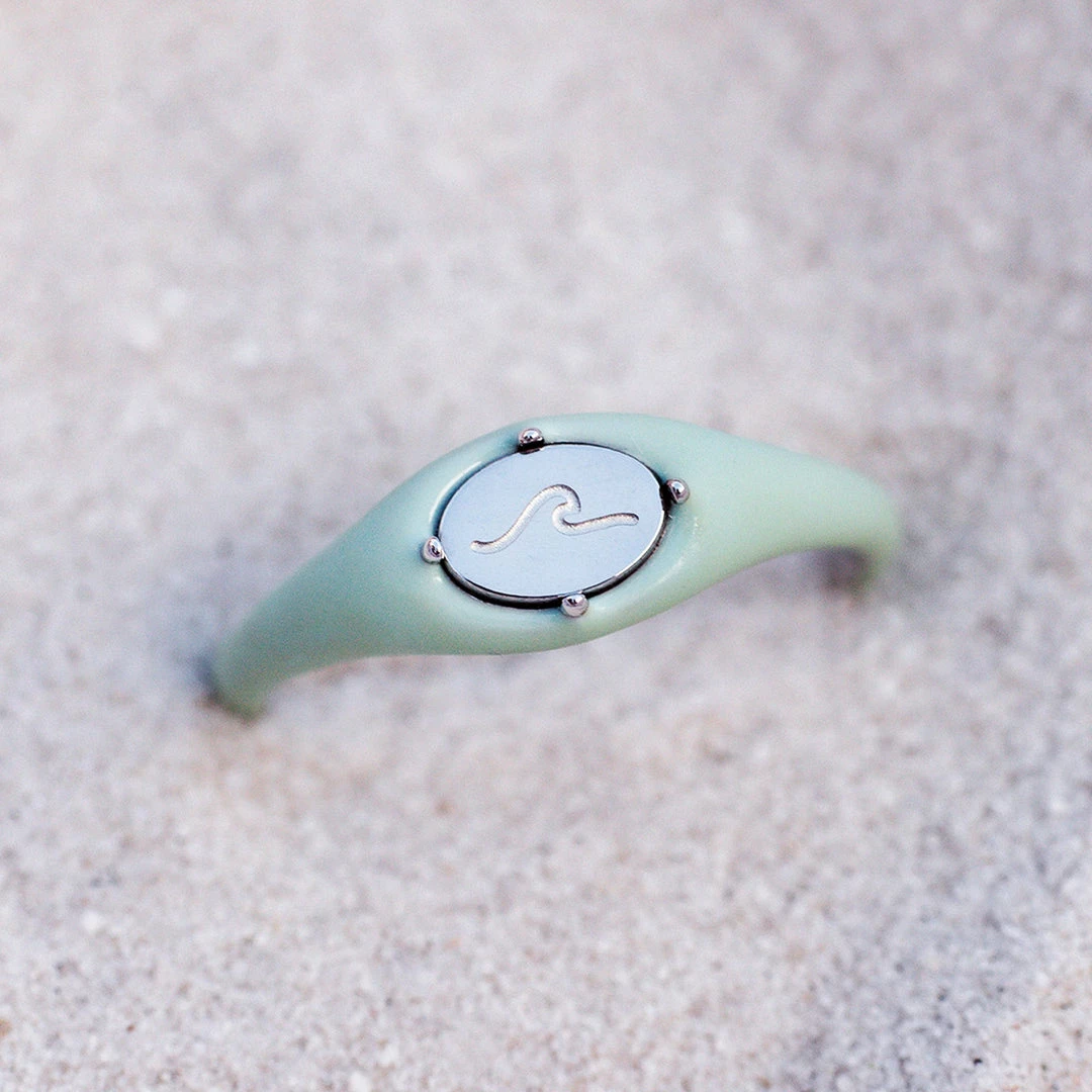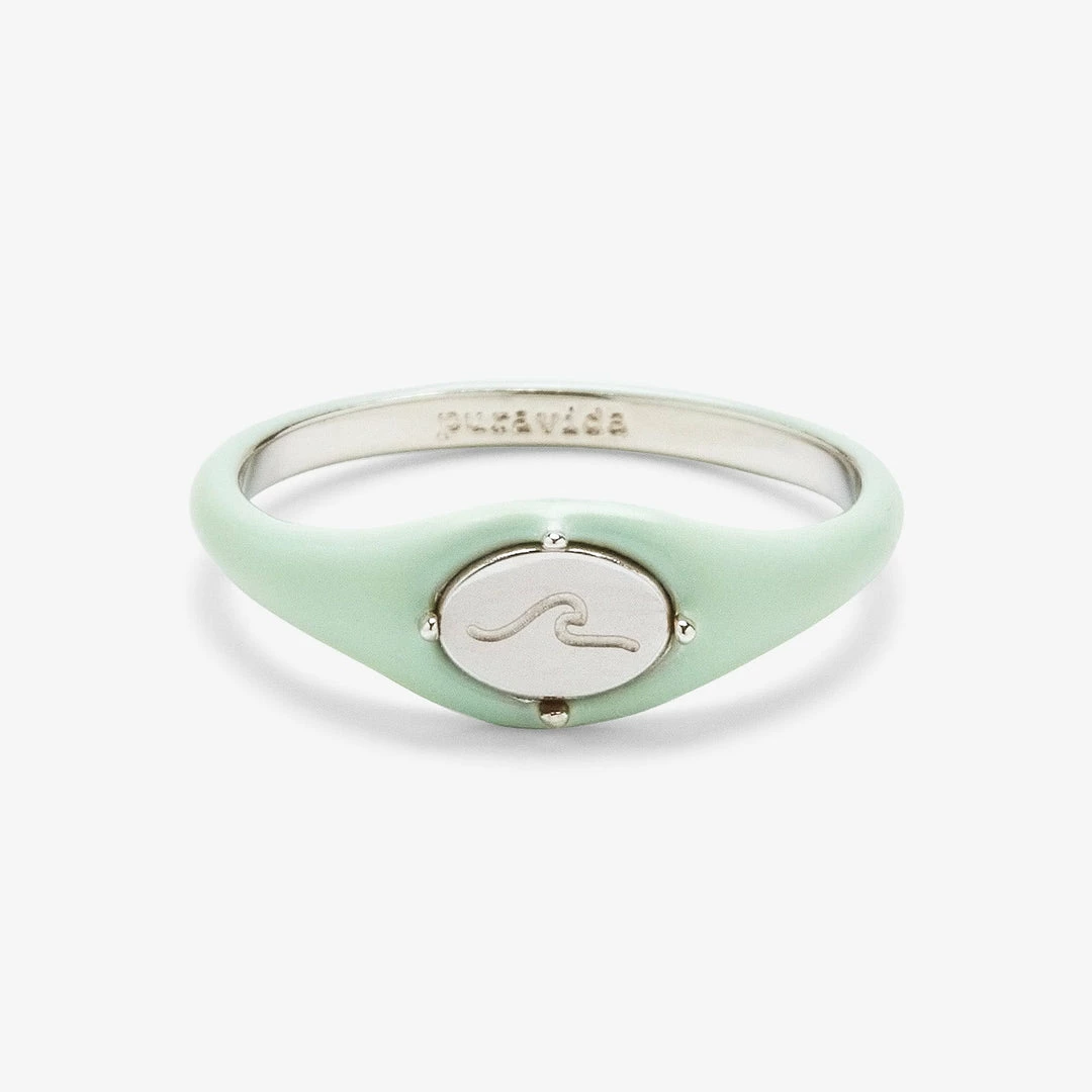 Hang ten this beach season in our Wave Enamel Decal Ring. With a signet-inspired design, this sea blue style features an enamel finish, with an engraved coin accent stamped with our classic wave logo.