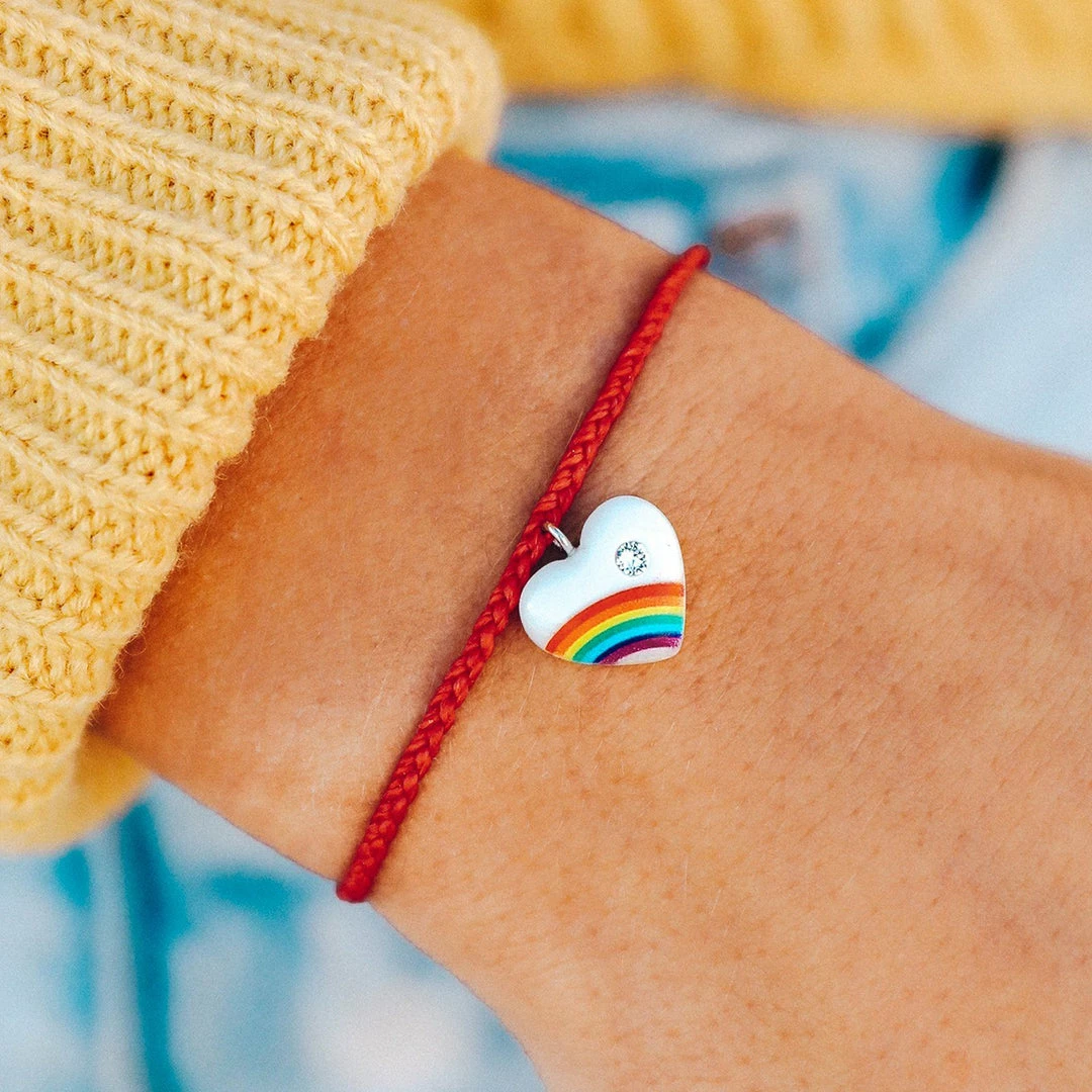 You + our Vintage Heart Bracelet = the perfect match! This throwback design features a bitty braided band in two string hues, with a retro rainbow heart charm with a sparkling rhinestone.