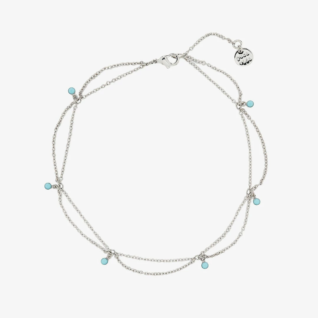 Make every beach day even better with our new Bondi Anklet. This chic, silver style features a dainty, double-chain design, with dangling gemstone accents inspired by the sea.
