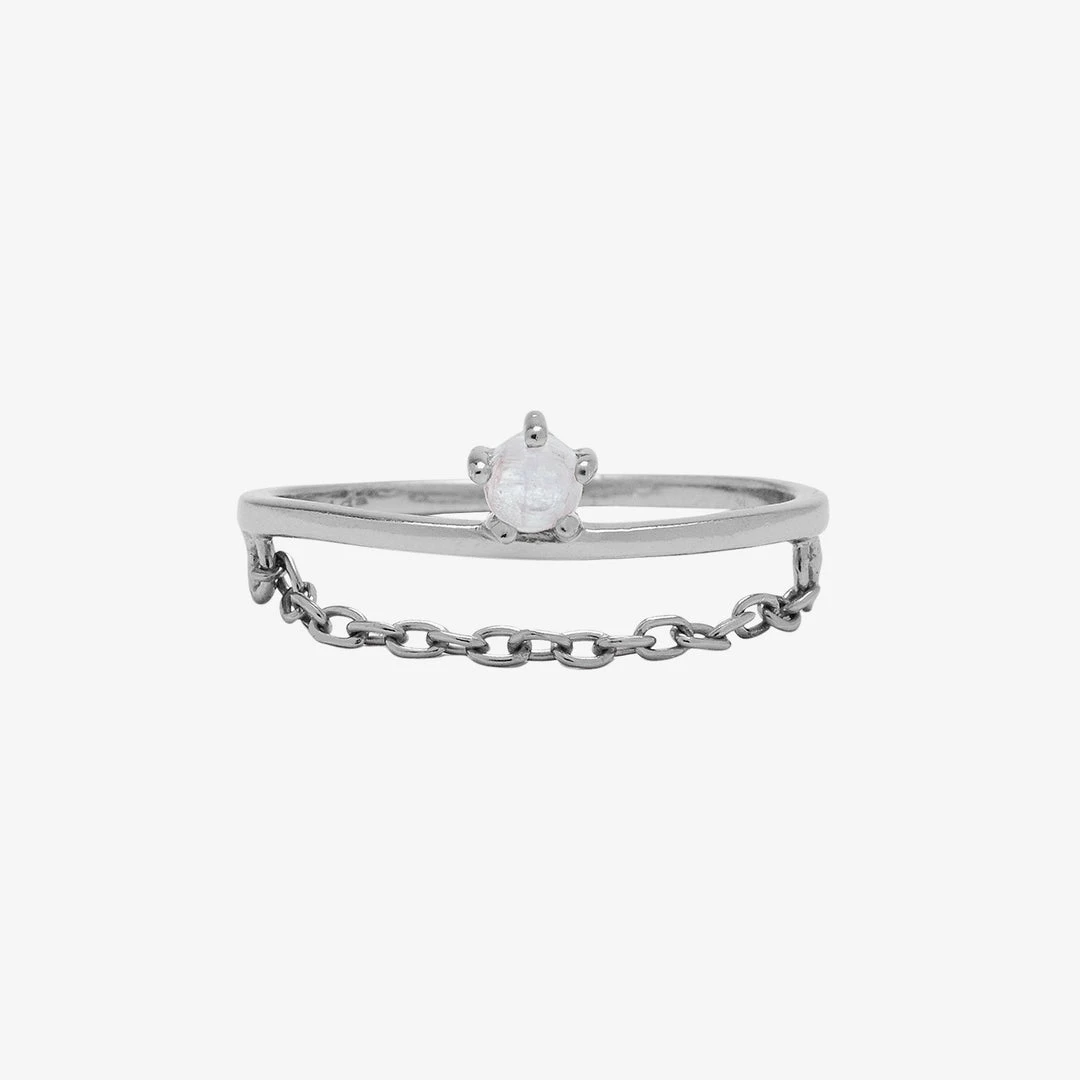 It’s dainty, it’s delicate and it’s oh-so pretty! This new sterling silver Moonstone Chain Ring features a thin band plus a chic cable chain and a tiny gemstone known for giving you a “go with the flow” attitude.